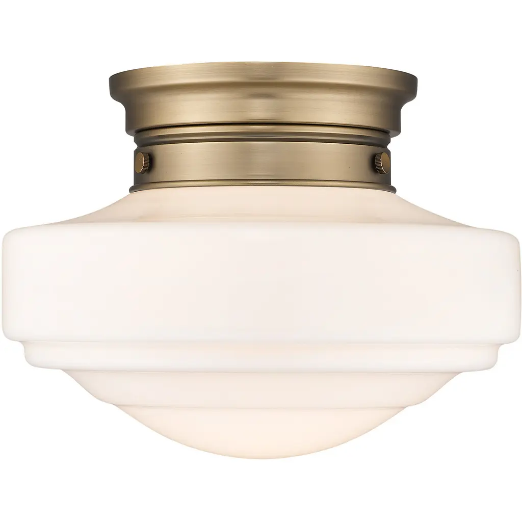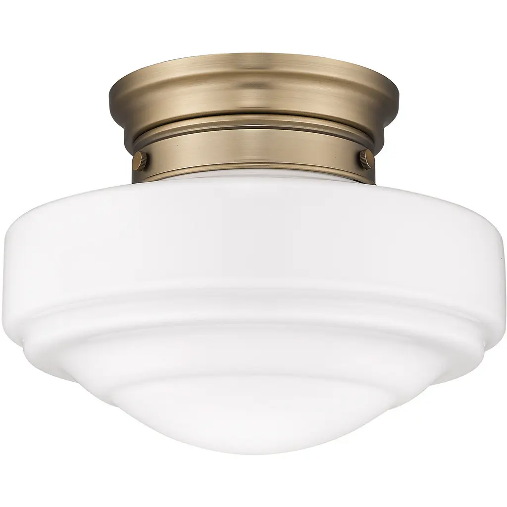 Ingalls 1 Light 12 Inch Modern Brass Semi-Flush Mount Ceiling Light In Vintage Milk Glass