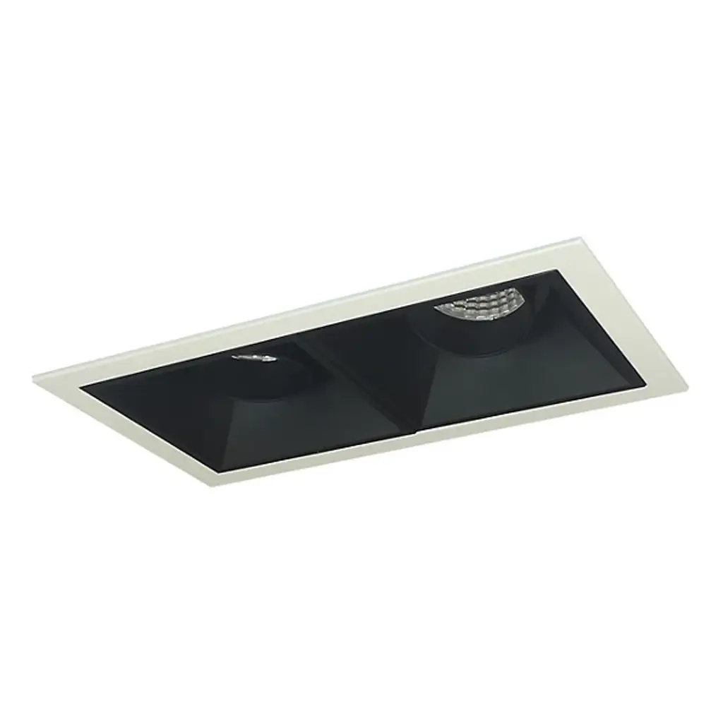 Add the Iolite MLS LED Adjustable Snoot Two Head Trim Set from Nora Lighting to your ceiling with a potent downlight profile. Two damp-listed LEDs set behind adjustable snoots sit embedded within twin mountings set next to each other in a single rectangular trim of aluminum. The lamp design promises an infinitely customizable lighting profile able to emphasize décor, or turned directly downward for a wide-reaching pool of light from above.