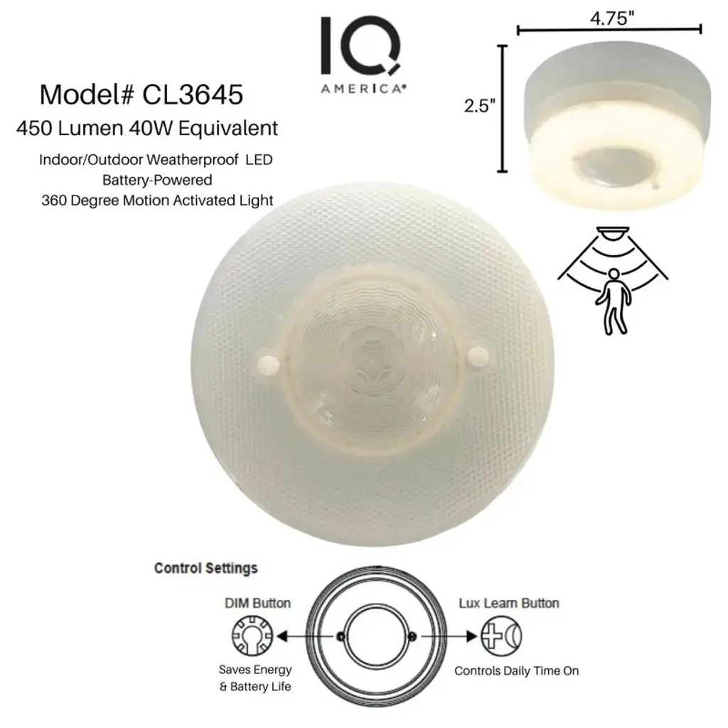 Iq America Cl3645 Battery Motion Sensor Ceiling Light - 5" Flush Mount, 450 Lumens, Wireless Installation 1Pk