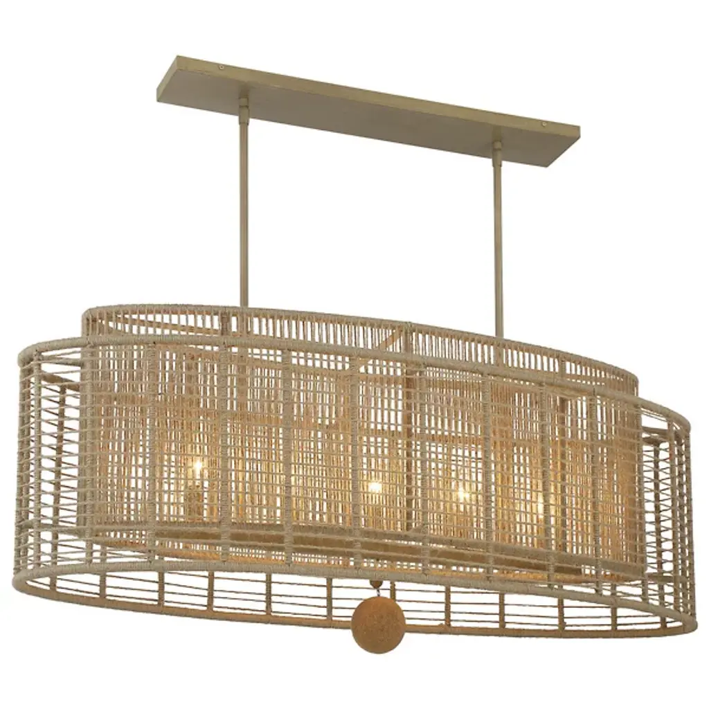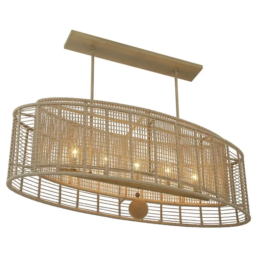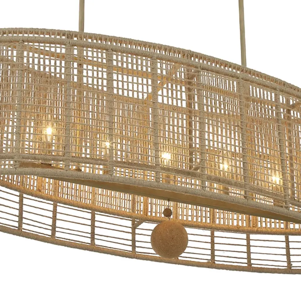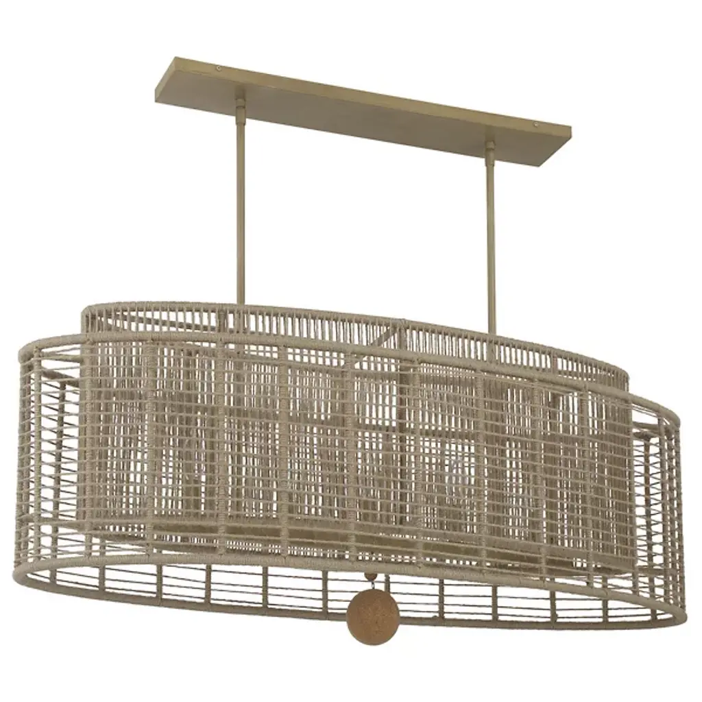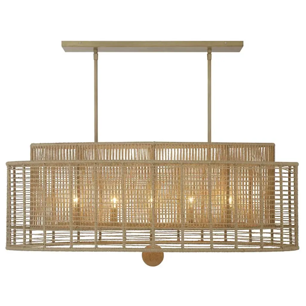 The Jayna Linear Suspension from Crystorama features a thoughtfully crafted two-layered design hand-wrapped in natural jute for an organic and earthy appeal. Its open weave and rich texture create a captivating pattern of light and shadow when illuminated, adding depth and visual interest to any space. Versatile and stylish, this fixture complements a variety of interiors—from traditional and boho to coastal aesthetics—bringing a warm, natural element that enhances your home's atmosphere with relaxed, effortless charm.