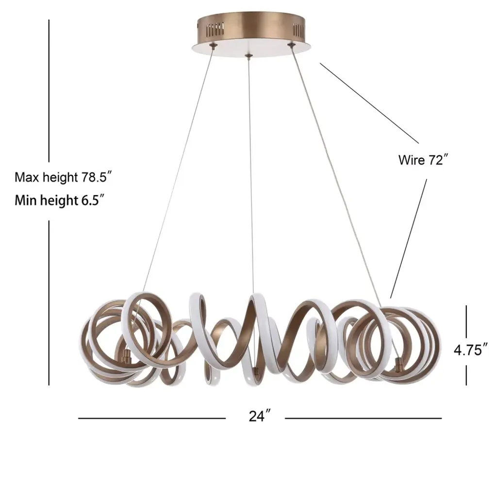 Jonathan Y 24" Metal Cursive Adjustable Spiral Ceiling Light (Includes Energy Efficient Light Bulb) Brown: Etl Listed, Integrated Led