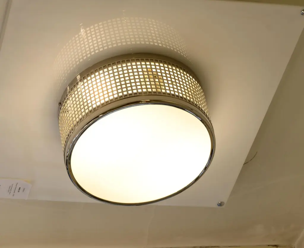 Puristic design from the early stages of the Wiener Werkstaette,Measures: Diameter 25 cm.This lamp is also available in diameter 35cm and 50cm.All components according to the UL regulations, with an additional charge we will UL-list and label our fixtures.