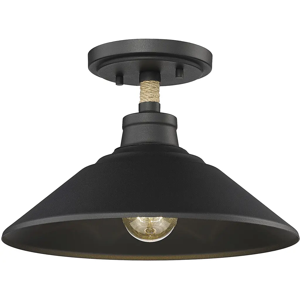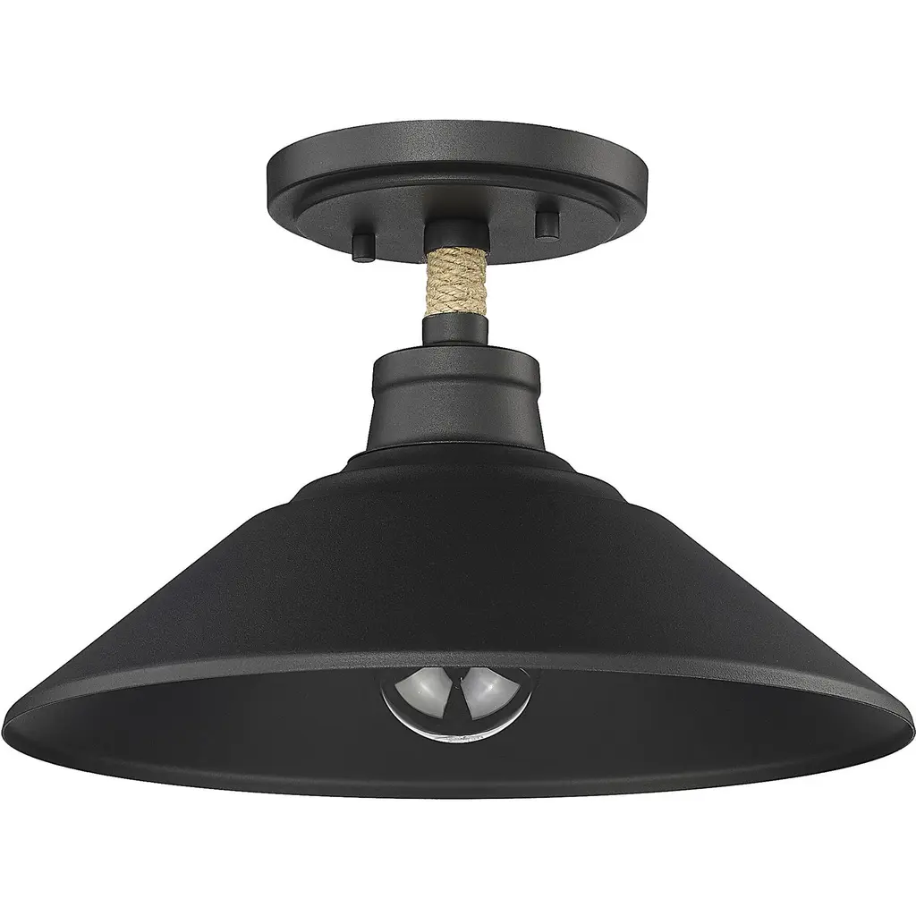 Bring a cozy, coastal charm into your home with the Golden Lighting Journey 1-light Semi-Flush Mount. Featuring a metal shade and a natural black finish, it creates a welcoming atmosphere. The soft, dark charcoal shade lends an understated yet sophisticated look, while the tactile texture offers an organic feel. This versatile lighting solution is damp location rated, making it suitable for covered porches, bathrooms, and laundry rooms. With overall dimensions of 12"W x 7.75"H x 12"D, it requires 1 E26 Medium base bulb (not included), with a maximum wattage of 100. The authentic rope accents add a unique touch, bringing a breezy, marine-inspired look to any space. Perfect for entryways, bedrooms, and kitchens, this fixture embodies style and quality.