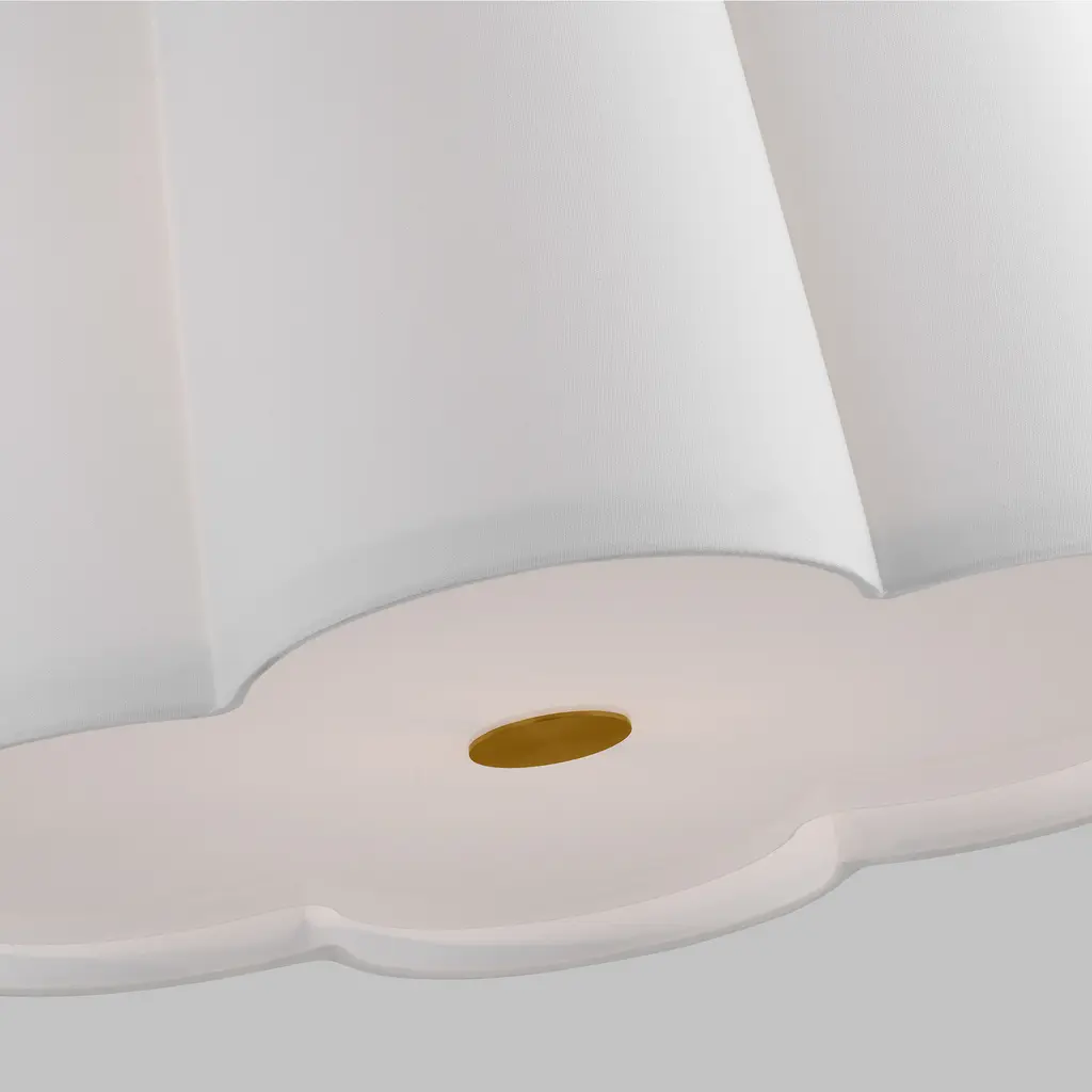 Floral motifs and feminine scalloping take center stage with the Bronte series by kate spade new york. The classic quatrefoil silhouette is beautifully updated with a fabric white line shade and burnished brass finish. Bronte adds a whimsical focal point for the entryway or dining room.
