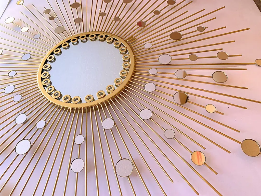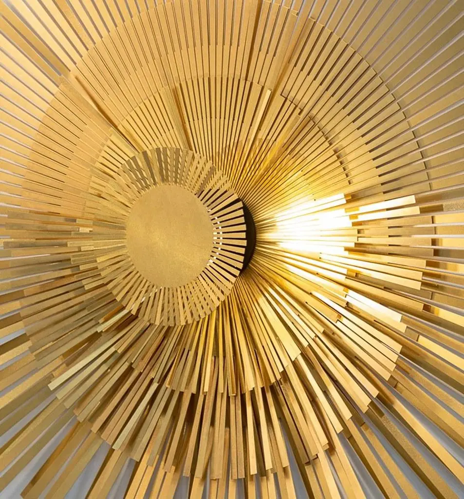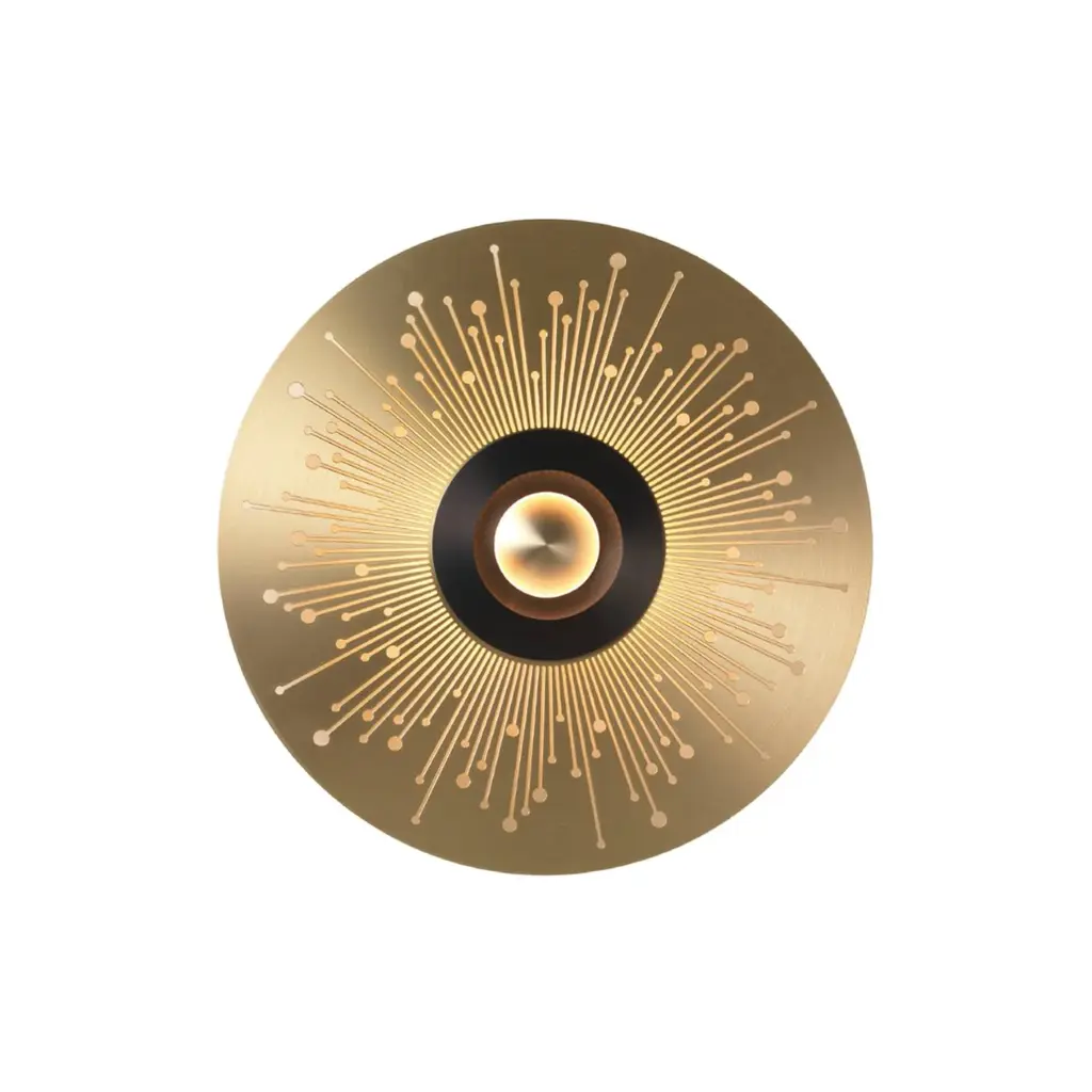 Brass light made from solid brass, composed of multiple thin strips of brass which the end user can shape anyway desired.The spokes can be opened for a more eccentric appearance or kept flat for a more minimalist look.Available with LED + top cover or medium bulb socket max 60W.Can be used as a wall or ceiling light.Handmade.Available in three sizes:Large 24 in. diameter x 5.9 in. deepMedium 15.75 in. diameter x 5.9 in. deep. Send message for pricing.