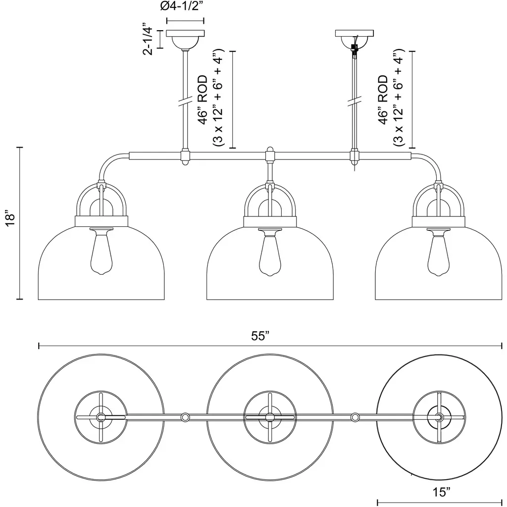 Lancaster 3 Light 20.15 Inch Matte Black Island Light Ceiling Light