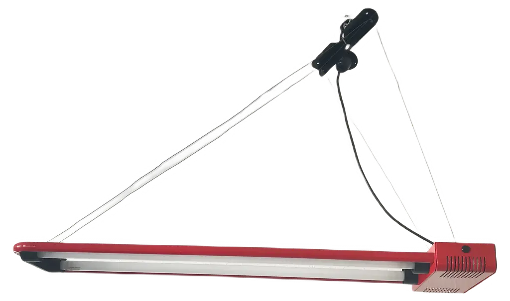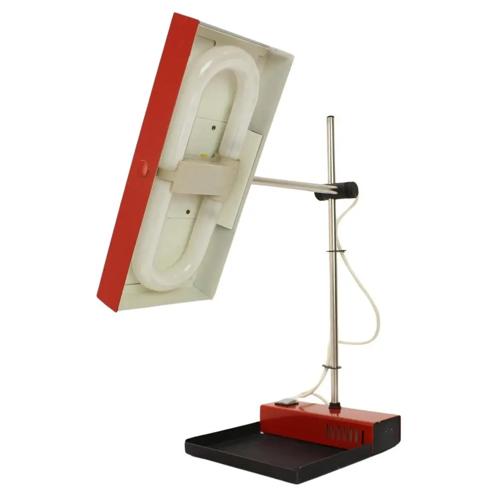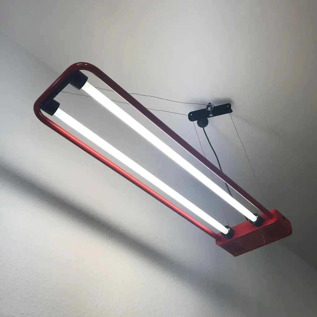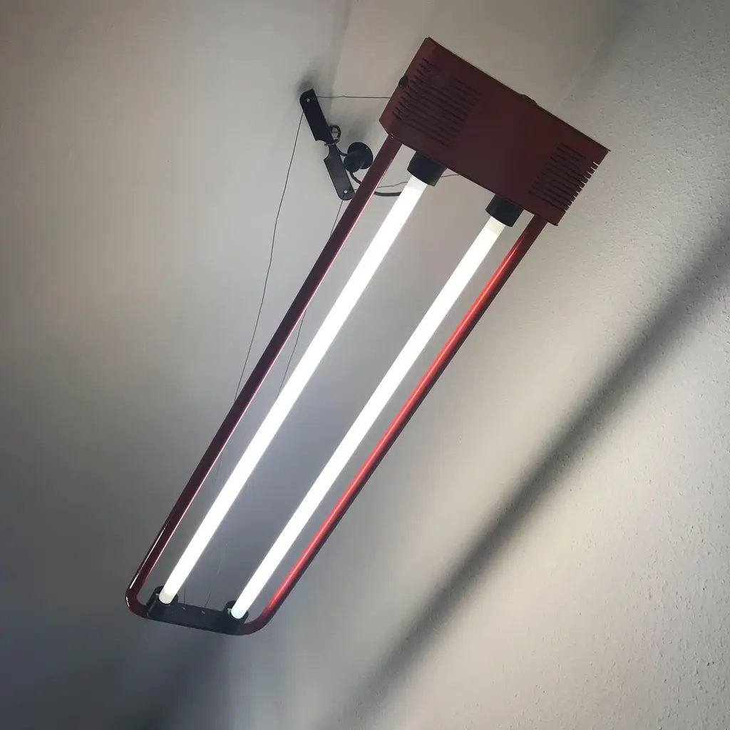 This large fluorescent tube lamp was designed by g. N. Gigante, m. Boccato & a. Zambusi in 1981 and produced by zerbetto in padovo, italy. The light illuminates with 220/240 v bulbs; an adapter is needed to accommodate 110/120 v bulbs. The lamp does not include the tubes. This red lacquered lamp is wired and in working condition. Labeled by maker, european plug (up to 250v).the wiring of this item may be original and might need replacement, if not specified otherwise.