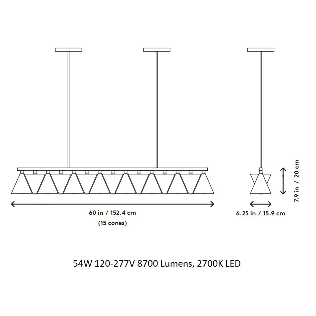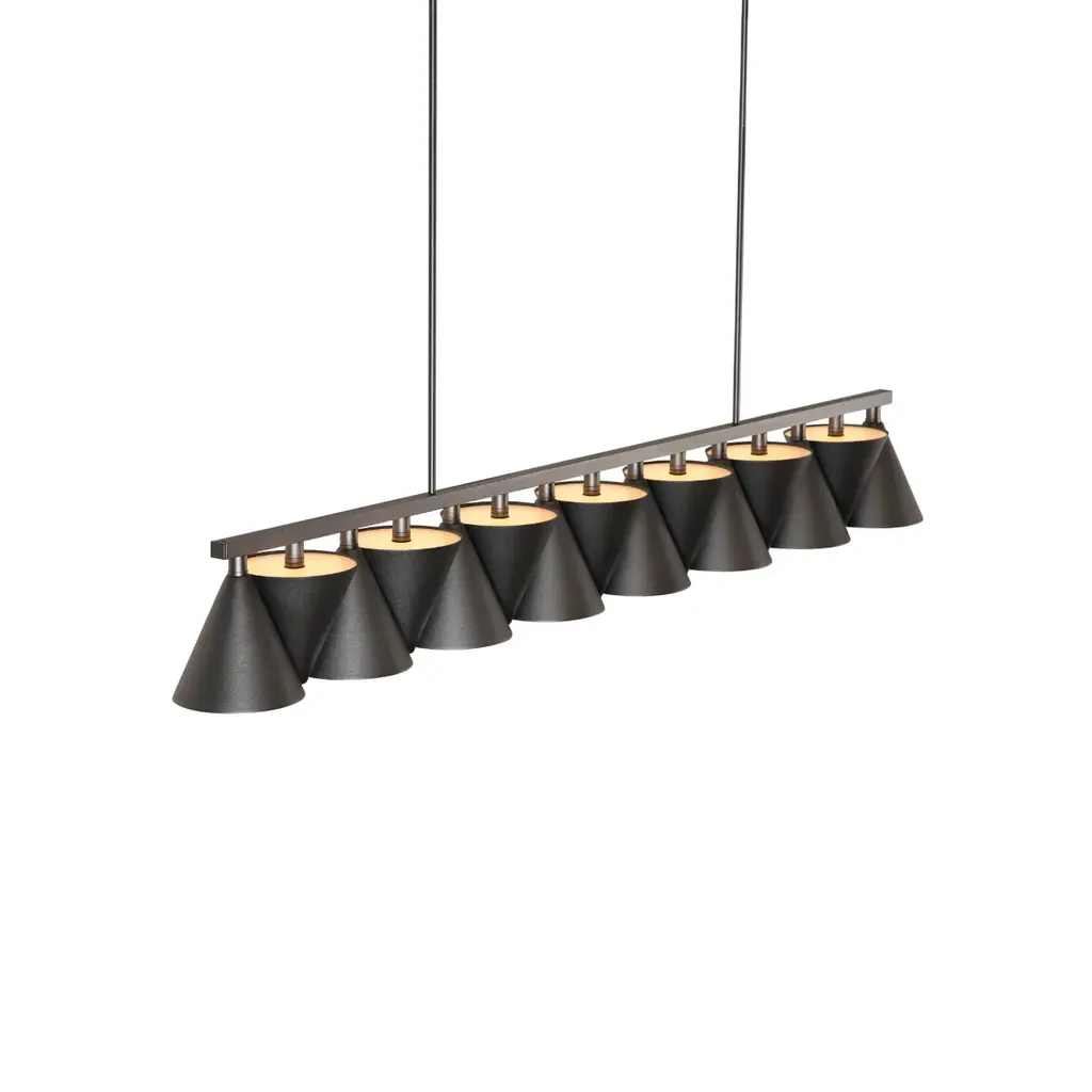 The Legato LED Linear Suspension from Matter Made captures the essence of smooth, continuous flow through its modular design. Featuring side-by-side up-facing and down-facing cones, this fixture delivers a refined combination of soft ceiling reflection and direct illumination. Perfectly suited for dining rooms and countertops, it enhances spaces with elegant, balanced lighting that complements sophisticated interiors. Highlights