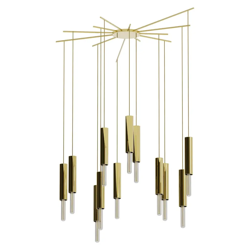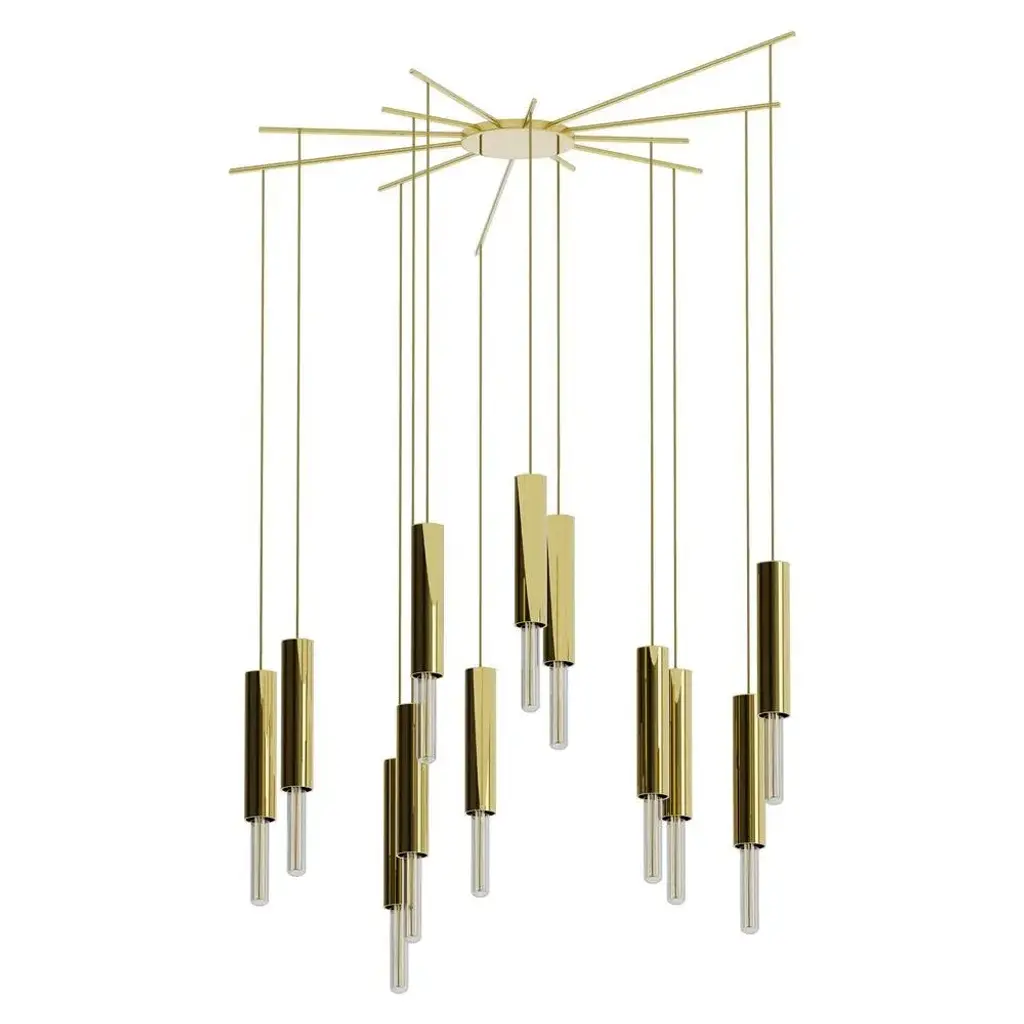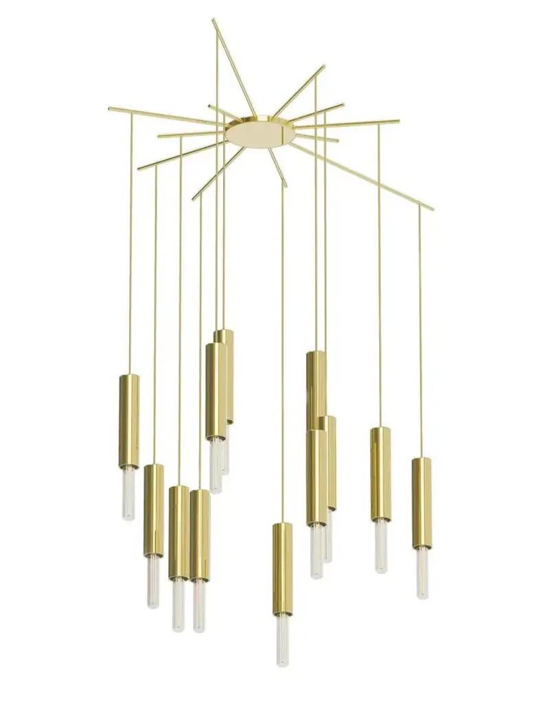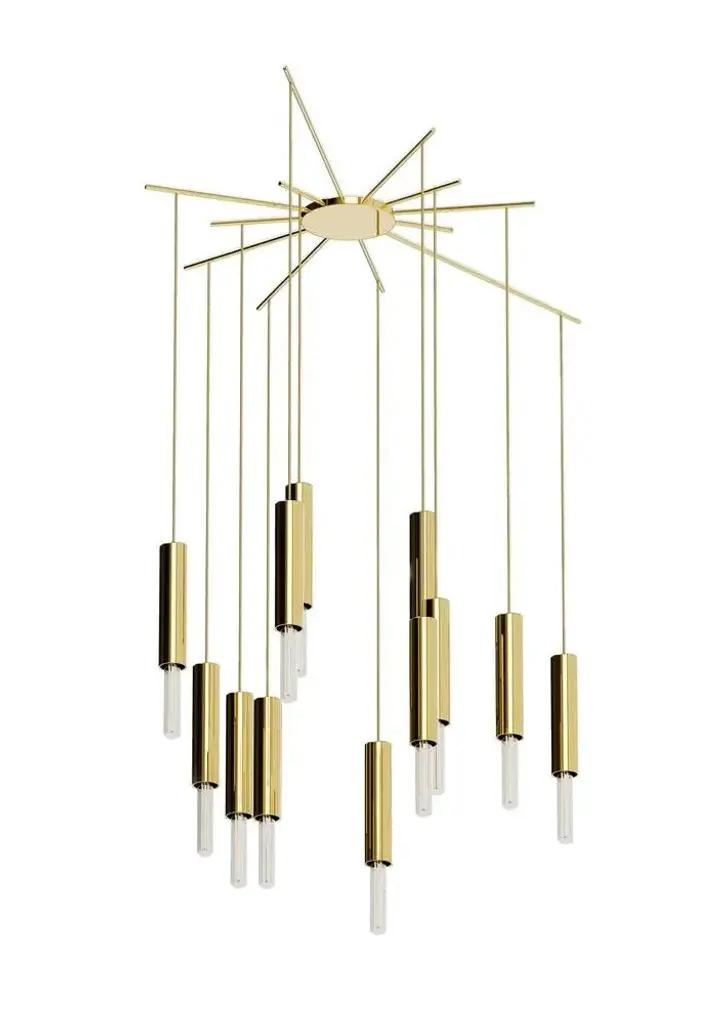Lightrain ceiling lamp, Royal Stranger. Dimensions: Adjustable height. Measures: width 115, depth 62 cm. Materials: Polished brass structure and vintage lamps. Like a rain of light dropping from your ceiling, the vintage lamps combined with the metal structure will add a touch of light and a pinch of new luxury to your space. Royal stranger is an exclusive furniture brand determined to bring you the best unique pieces of art and design. Fusing design, art and the best craftsmanship, they strive to deliver the best state of the handmade art furniture. The design team works every day to create meaningful products that represent values such as passion, function, aesthetics and know-how. Values that are meant to represent Royal stranger’s DNA. This dedication is present at all stages of production and the combination of craftsmanship and innovative design contributes to our final purpose: to produce certified high-quality products, made with passion and expertise and using royal materials such as gold leaf, rich woods and high quality lacquers. It was in 2013, as an architects, that Sofia Santos & Rui Santos started to push the boundaries of innovation in several retail design concepts for some of the best stores in Portugal. This will has always been present in their work, and that’s how the brand was born. This piece is attributed to the mentioned designer/maker. It has no attribution mark and no official proof of authenticity, however it is well documented in design history. I take full responsibility for any authenticity issues arising from misattribution, Up to 250V (Europe/UK Standard).