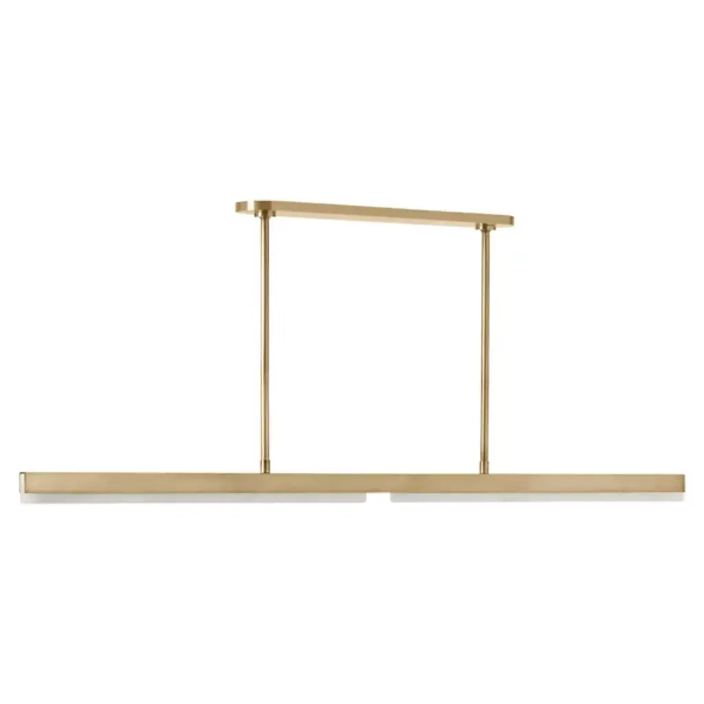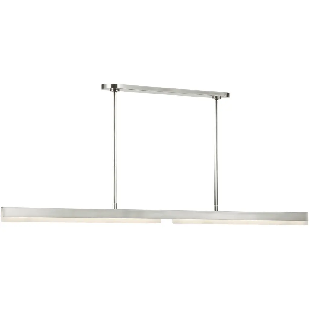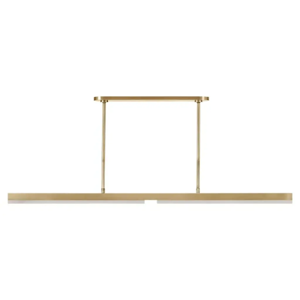 The Linea 60 LED Linear Suspension from Visual Comfort Modern embodies the artistry of channel-set jewelry, where sleek metal channels gracefully frame solid alabaster shades. This striking fixture, designed by Kelly Wearstler, features integrated LED lighting, allowing the alabaster to emit a warm, radiant glow from within. Blending modern sophistication with architectural elegance, its refined aesthetic makes a bold yet understated statement, enhancing dining rooms, kitchens, or living spaces with its timeless allure.