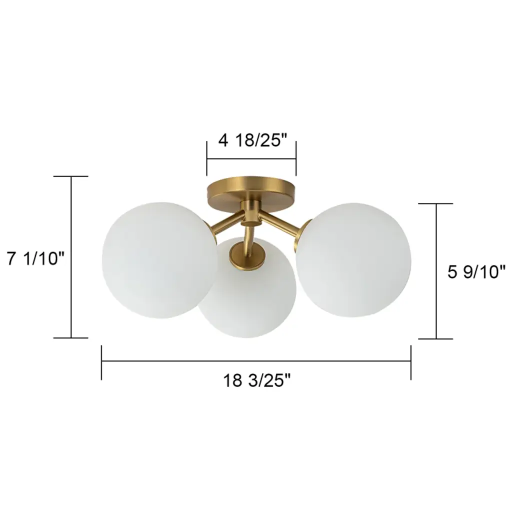 Llhzsy Modern 3-light 18 3/25" W Semi Flush Mount Ceiling Lights With Opal Glass Shade-gold