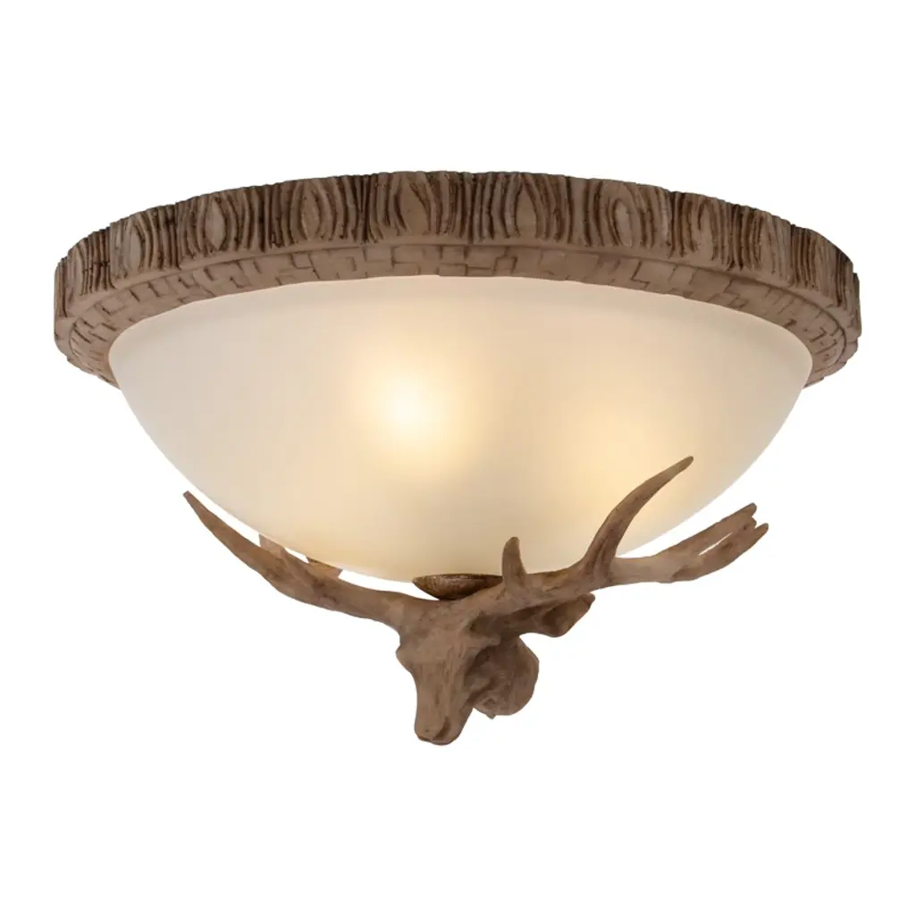 Lodge 2L Led Bronze Rustic Antler Semi Flush Ceiling Light Or Fan Light Kit - 12.5-In W X 8.5-In H X 12.5-In D - Weathered Patina - 12.5-In W X 8.5-In H X 12.5-In D