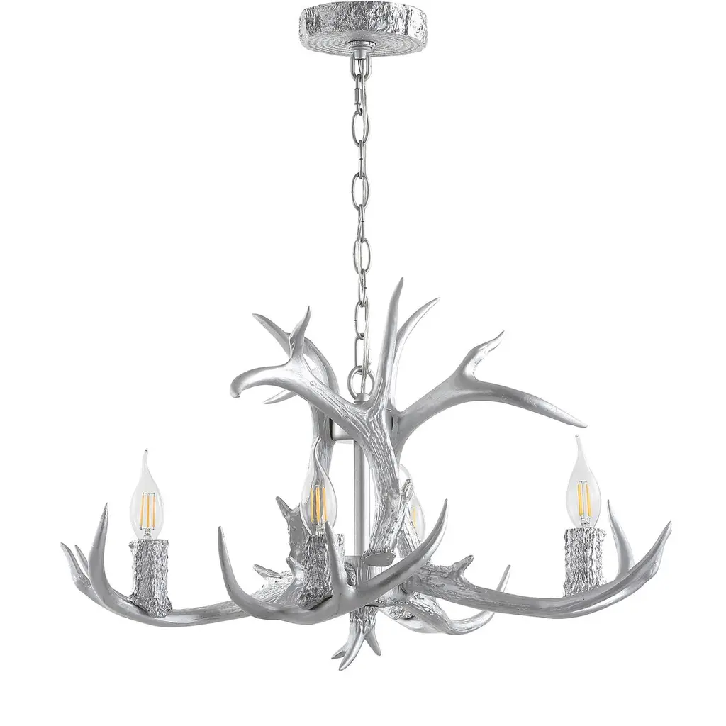 FEATURES: • Weathered patina finish offers a distinctive look and quality poly resin, steel construction• French scavo glass provides bright illumination and a rustic feel• Dual mount; ceiling fan light kit (check compatibility with your fan) or semi flush ceiling light• On-off pull chain or wall switch controlled• Uses 2 x 4 watt LED E12 candelabra base bulbs (included)• 350 lumens brightiness, 2700K CCT (warm white), CRI 90 (daylight)• 12.5-in W x 8.5-in H x 12.5-in D• Mounting hardware and instruction manual included for easy installation• Interior dry rated; ideal for dining rooms, kitchens, bedrooms, foyers, or any other dry area of your home