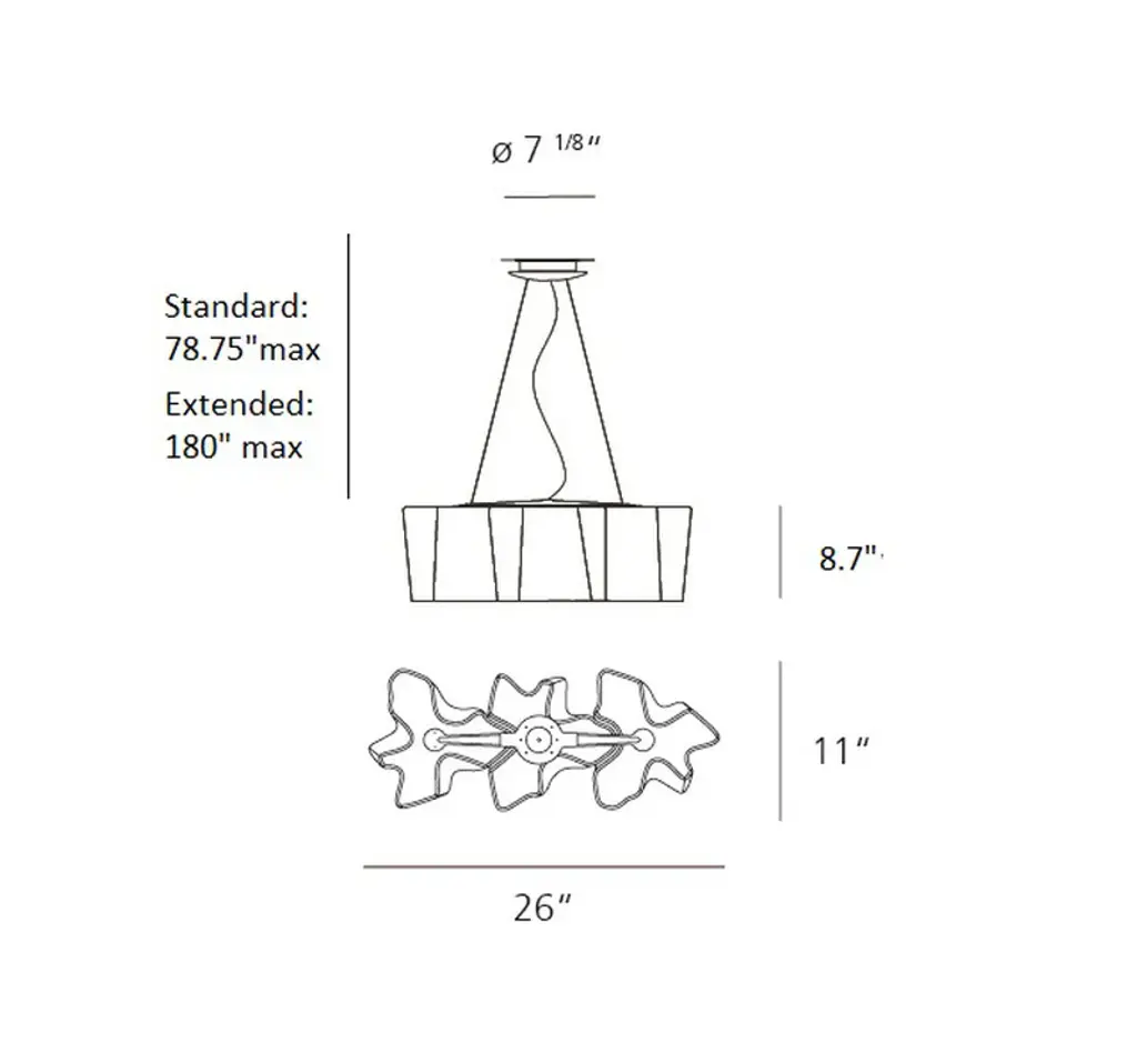 Suspension mounted fixtures for diffused lighting for applications with an assembly of three diffuser units in a linear configuration. Features