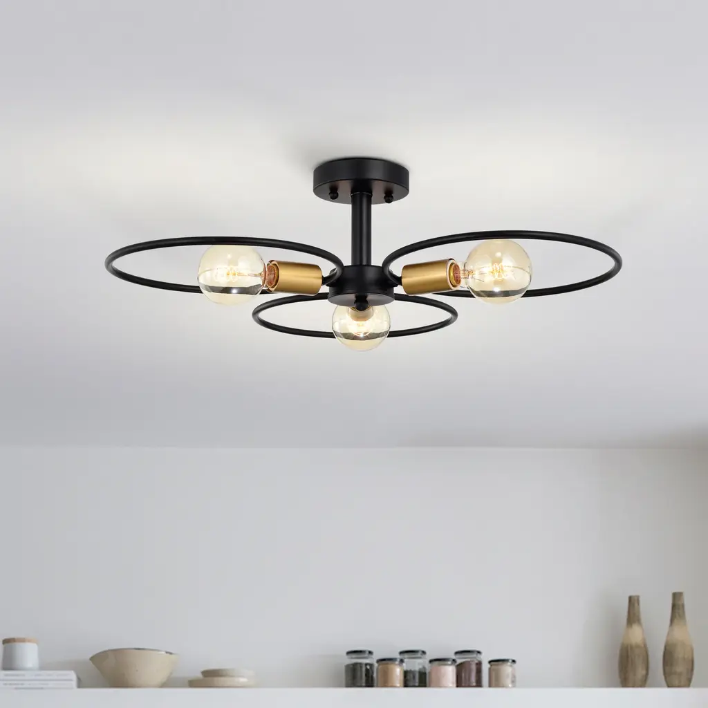 This semi-flush mount light has a timeless elegance thanks to its extraordinary simplicity. Fixture features 3-light, matte black finished. It stands out with its modern and minimalist design, introducing a unique atmosphere in the room.Features:Dimensions:Note:This light is not damp rated. Whether it is dimmable or not depends on the light bulb not on the light fixture itself. If you use dimmable light bulb and a dimmer switch, it will be dimmable. This fixture does need to be hard wired. Assembly is required. Professional installation is recommended. This light cannot be installed on a sloped or vaulted ceiling.