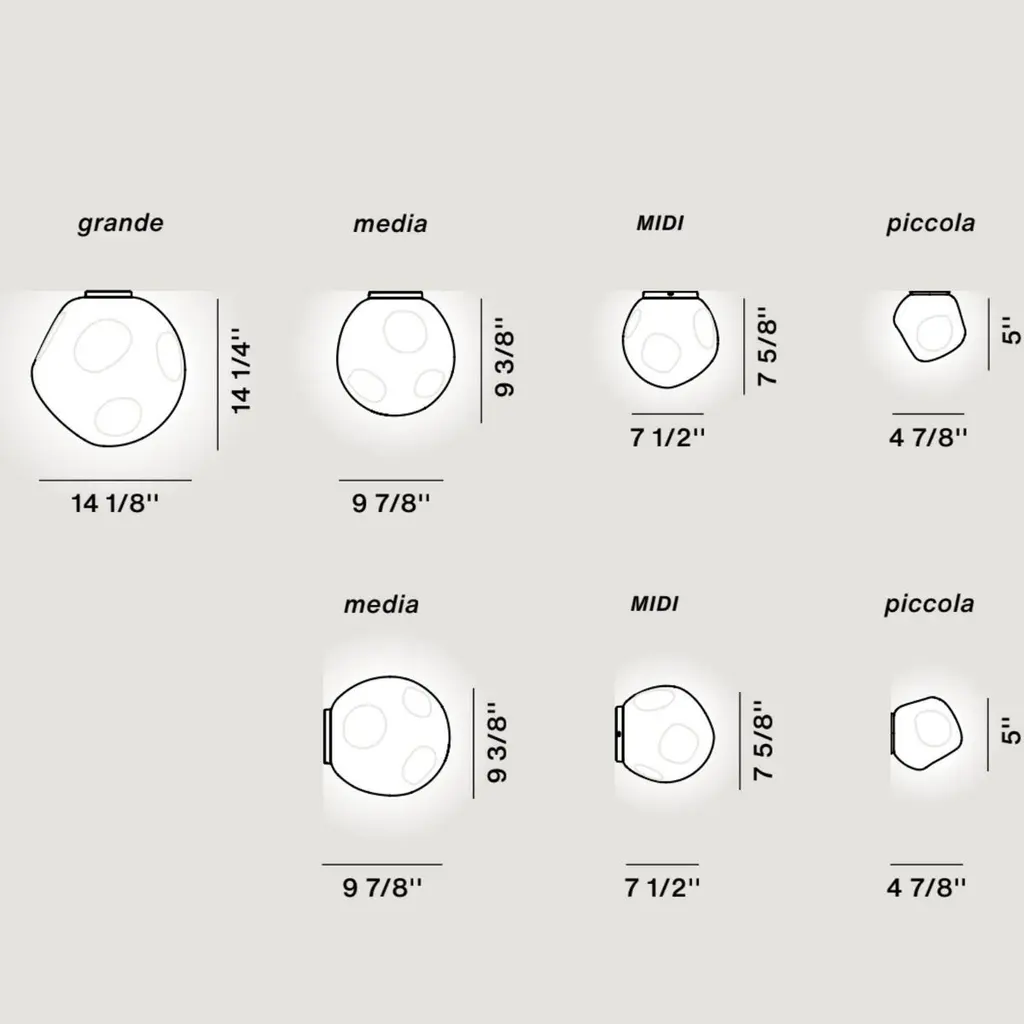 Ludovica & Palomba Medium 'Hoba' Blown Glass Wall or Ceiling Lamp for FoscariniPerfectly imperfect, 'Hoba' is the result from years of blown glass research by design team Ludovica and Roberto Palomba. This anti-geometric collection will feature small variations from lamp-to-lamp making each piece its own unique piece of art. Produced by Foscarini in Italy using the finest materials available and uncompromising craftsmanship.Price is per item. Available to order in unlimited quantities and in four sizes, the largest of which is suitable as a ceiling lamp, and the three smaller sized lamps are suitable for wall or ceiling installation. Also available as a table lamp and pendant, please see our separate listings. This listing is for the medium Hoba wall/ceiling lamp.In stock lead time 1-2 weeks. Out of stock can add 10 weeks or more. Please note that inventory, lead time and availability can change without notice. Please inquire for current lead time and availability prior to placing time-sensitive orders.Medium accommodates 1x max 20W LED E12 type G bulb (bulb not included). Each lamp is IP20 rated and ETL listed. Not UL listed, but recommended UL listing possible from an authorized 3rd party vendor for an additional fee. Contact us to facilitate.Made to order.All sales final.