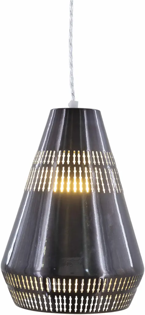 Collection: Luimneach Colors: Black, Translucent Material: Fixture: Iron Styles: Southwestern Made In: India Lighting Type: Pendant Base Color: Black Hanging Method: Cord Cord Length: 8' Number of Bulbs: 1 Socket Type: E-26 Bulb Wattage: 100W