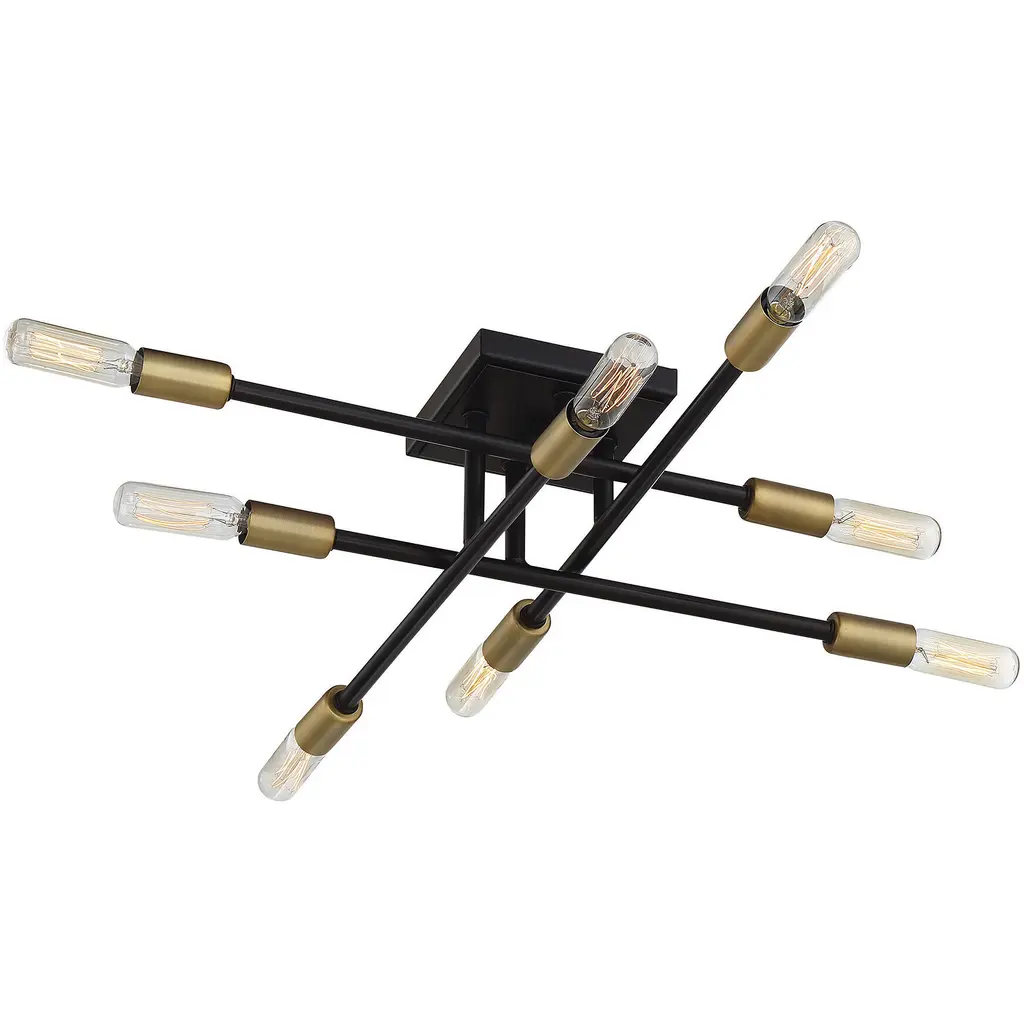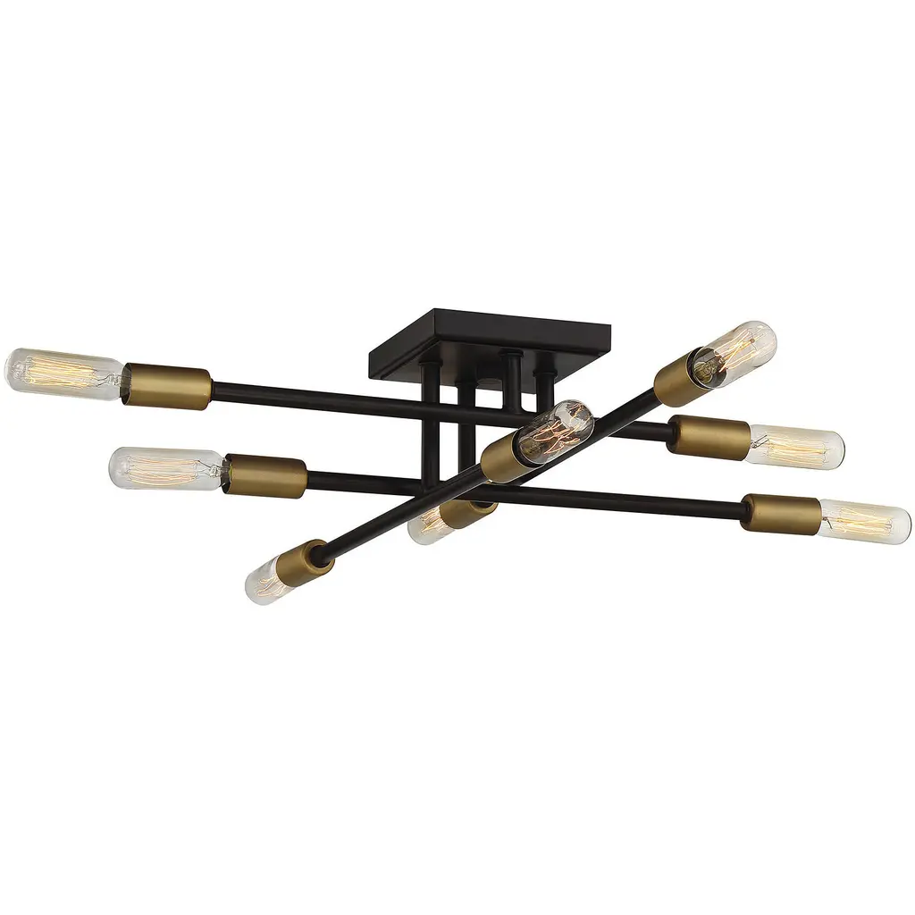The open, structured look of the Savoy House Lyrique 8-light ceiling semi-flush mount is a great choice for today's stylish interiors. Finished in bronze with brass accents. Semi-flush mounts can be used on the ceiling of pretty much any interior room, including foyers, hallways, stairways, closets, bathrooms, bedrooms, kitchens and more Bulbs not included. Try using stylized bulbs like Edison or tubular for a different look The finish can be matched with bronze or brass hardware or mixed with hardware in other finishes. Lyrique is perfect for contemporary style spaces and any room that has an edgy touch. When you choose a Savoy House lighting fixture, you can be certain youve selected a piece that will withstand the test of time.