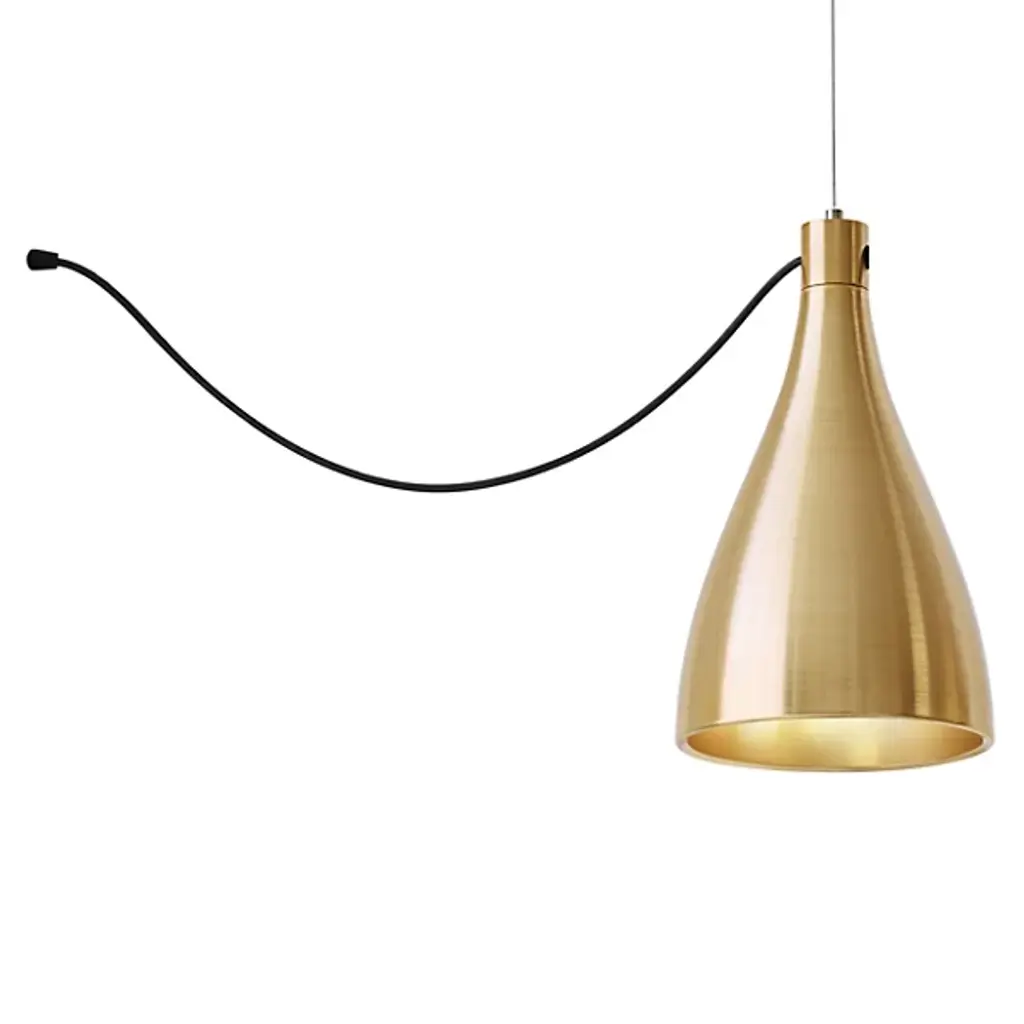 Deploy a daring and eloquent dance of design with the Madame Wall / Ceiling Light from Il Fanale. A smooth, Italian-designed spotlight created to evoke the stylized form of a ballerina, its robust brass structure extends from a dome-shaped anchor that acts to suspend from to the wall or ceiling, while a small, spherical joint secures a tall dome shade around its potent lamping. The shade structure cuts glare to its sides, transforming it into a tight pool of downlight amid reflected warmth.