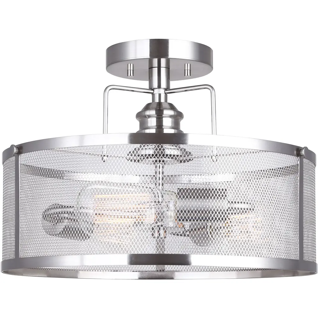 Madison 3 Light 15 Inch Brushed Nickel Semi-Flush Ceiling Light