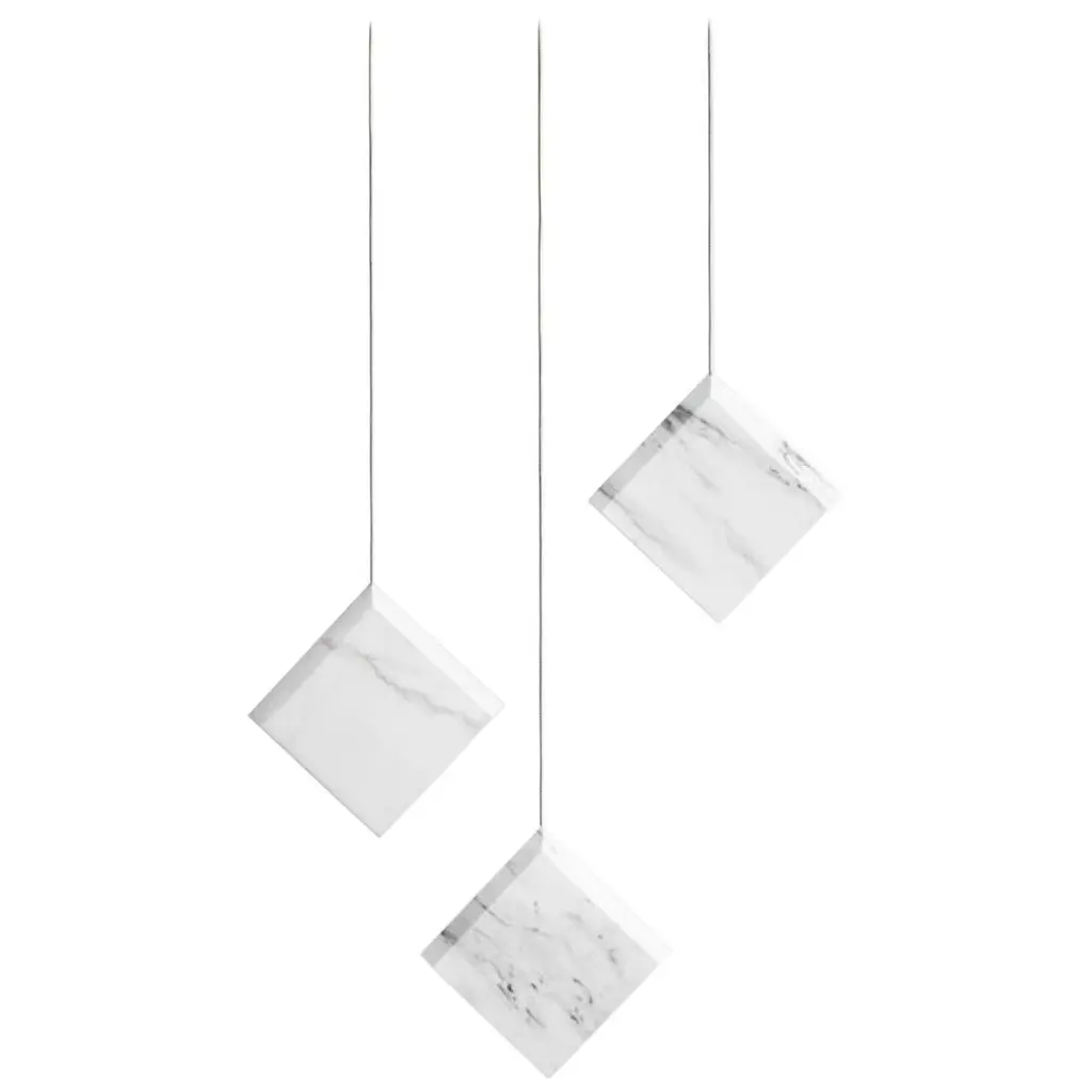 "Werner Jr. Carrara" contemporary ceiling marble lampStructure composed of a thin square in marble, single emission of LED light, suspension with steel wires. A lamp with an essential geometry that enhances the quality of handcrafted marble and the high technology of the LED lighting system. An object that does not invade the environment but furnishes it with class, thanks also to an enveloping and discreet light that guarantees a high Visual Comfort.Marble "White Carrara" Drivers 110/220v - 13 w LED - 2700 kPrice including taxes.