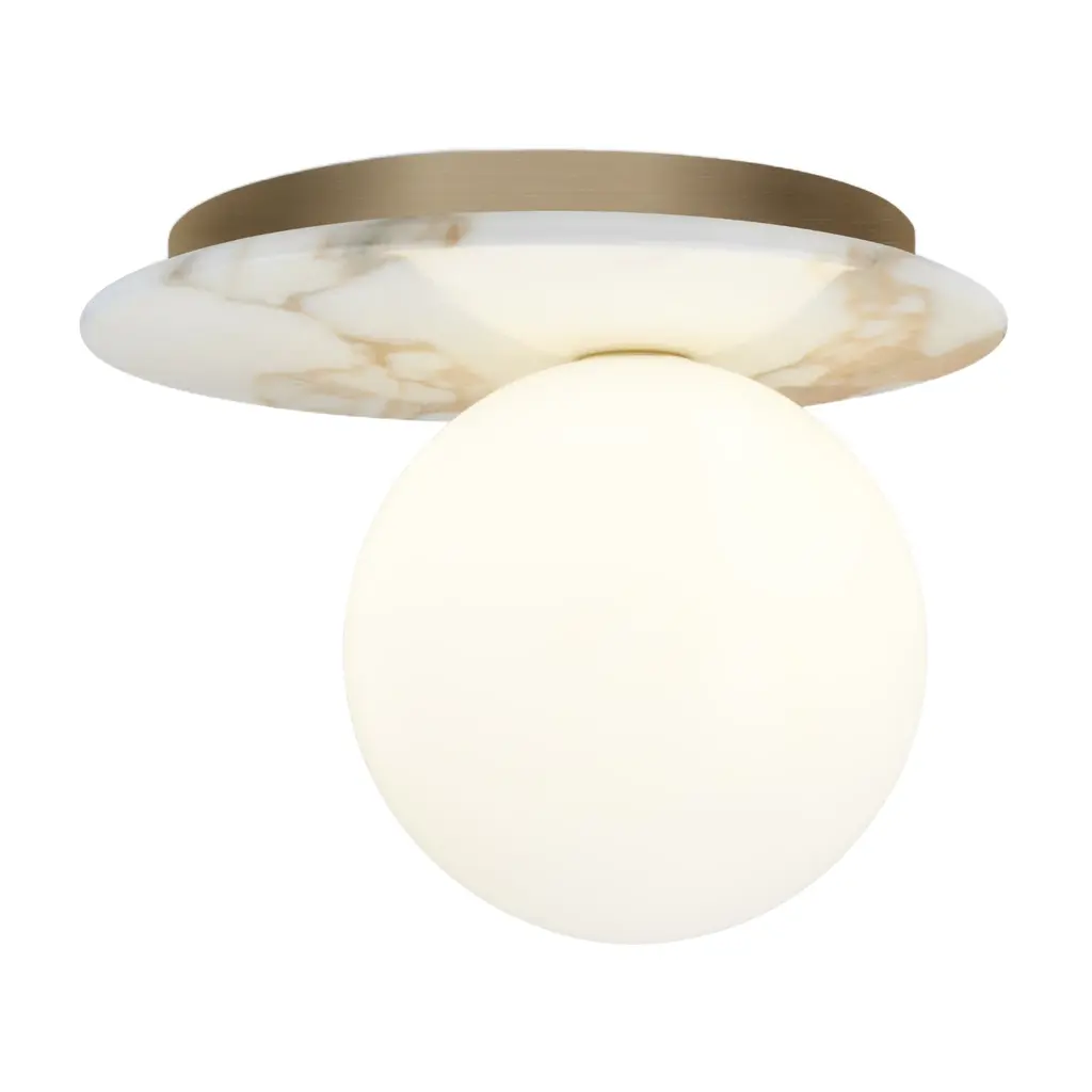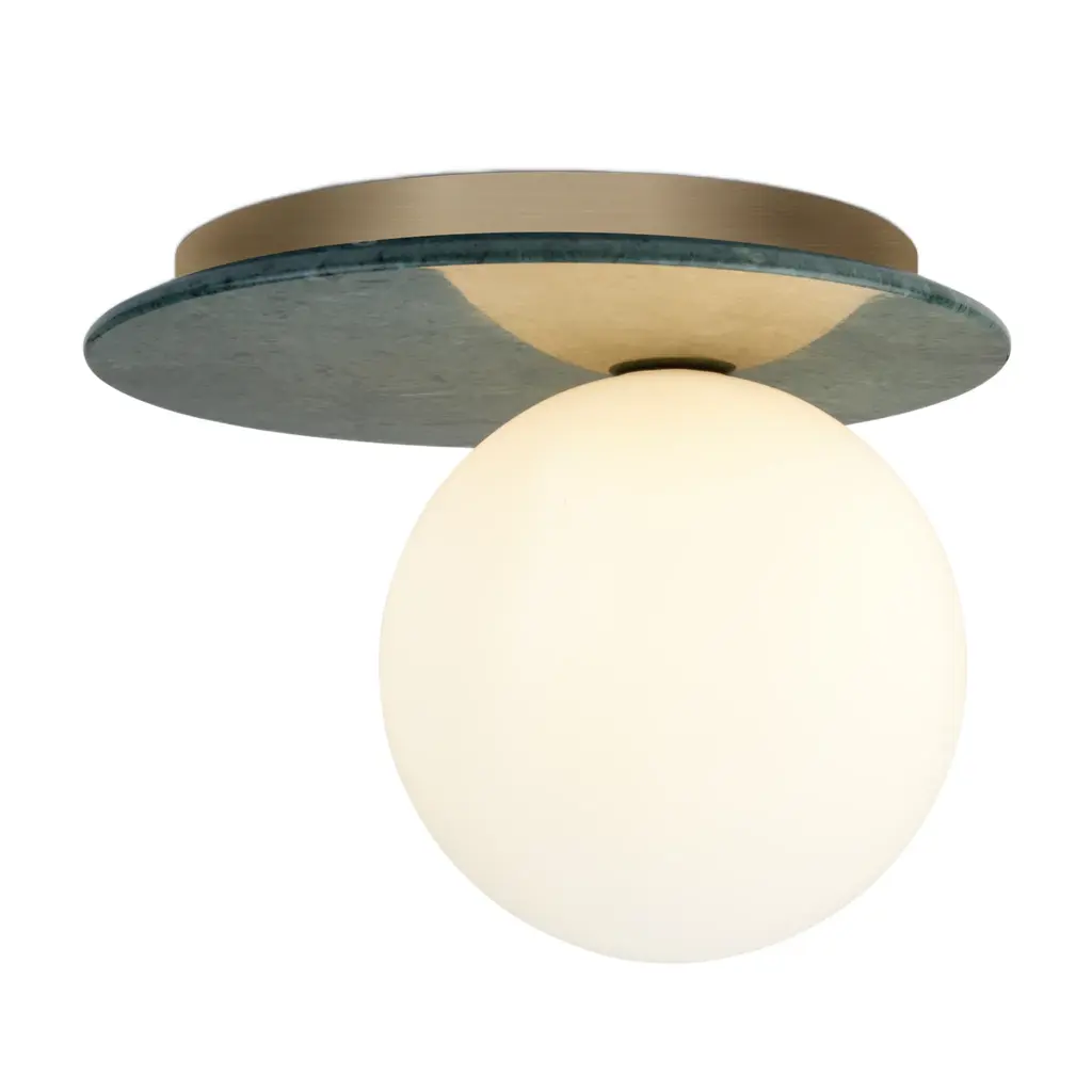 Introducing the Marble Panel Ceiling Lamp from Contardi's Emma collection. Made with luxurious green Guatemala or white Calacatta marble, this lamp exudes elegance and adds a vibrant glow to any space. Its pure white opal diffuser evenly disperses light, making it perfect for any environment. Available in table, ceiling, and wall versions.