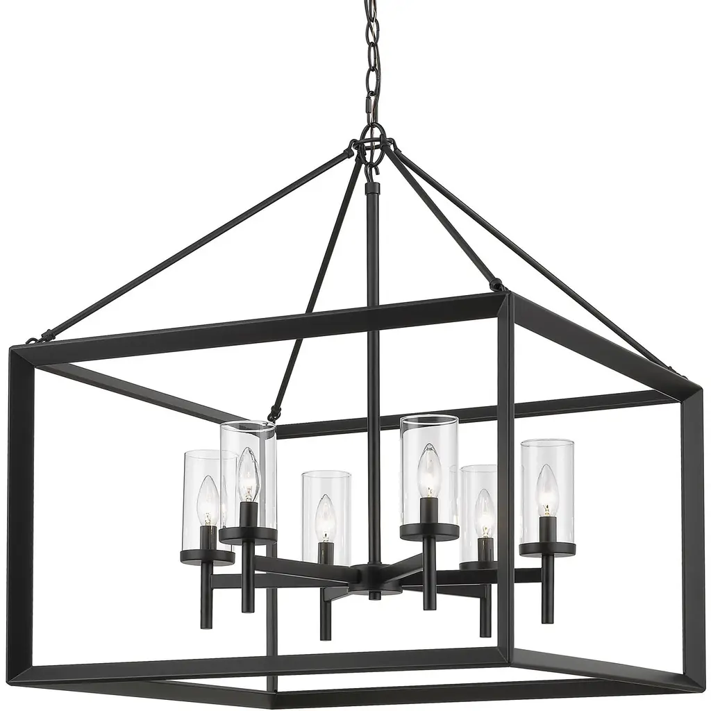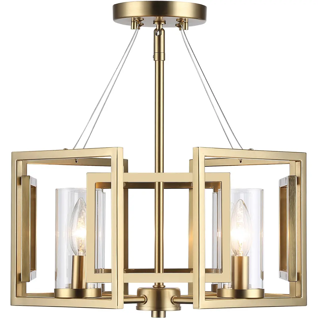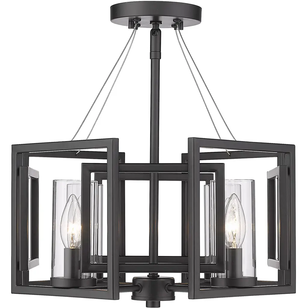 Refresh your home's ambiance with the Golden Lighting Marco 4-light Semi-Flush Mount. Featuring a glass shade and a sleek Matte Black frame, it creates an atmospheric glow that invites warmth into your space.The clear glass shade ensures brilliant light diffusion, highlighting the bulb and the refined design of the fixture. Its polished surface enhances light output, adding a contemporary elegance to your surroundings.The Matte Black finish is clean and modern, providing a timeless foundation that suits a variety of decor styles, from minimalist to bold and contemporary.This semi-flush mount is perfect for entryways, bedrooms, kitchens, and living areas with mid-height ceilings. It is Damp Location Rated, suitable for covered and semi-enclosed spaces with occasional moisture. The adjustable height feature ensures versatility for both sloped and flat ceilings.Overall Dimensions: 16"W x 10.63"H x 16"D. Requires 4 E12 Candelabra base bulbs (not included) with a maximum wattage of 60 per bulb.Bring exceptional quality and distinct style to your home with this stunning lighting fixture, designed to enrich your living environment.
