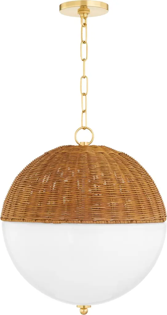 Nancy 18" Woven Hanging Shade in Soft Brass with White Wicker Shade