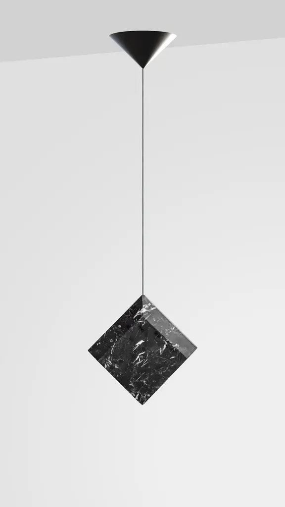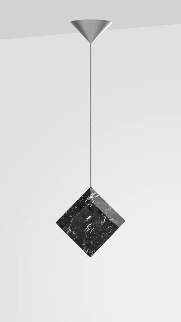 "Werner Jr. Marquinia" contemporary ceiling marble lamp.Structure composed of a thin square in marble, single emission of LED light, suspension with steel wires. A lamp with an essential geometry that enhances the quality of handcrafted marble and the high technology of the LED lighting system. An object that does not invade the environment but furnishes it with class, thanks also to an enveloping and discreet light that guarantees a high Visual Comfort.Marble "Black Marquinia"Drivers 110/220V - 5 W LED - 2700 KPrice including taxes.