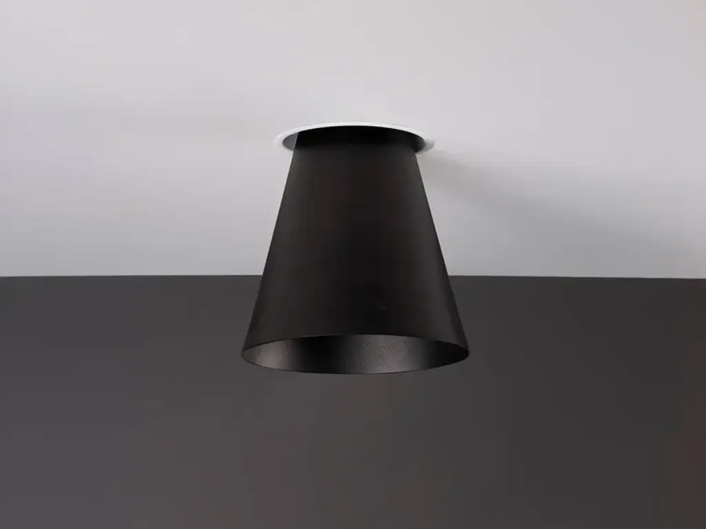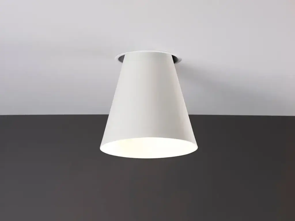 MARTE is a cone-shaped ceiling or recessed aluminum lamps available in two heights and in three finishes (fine texture painted). The shape characterizes the light emission by creating striking light cones.Finish: White, Black