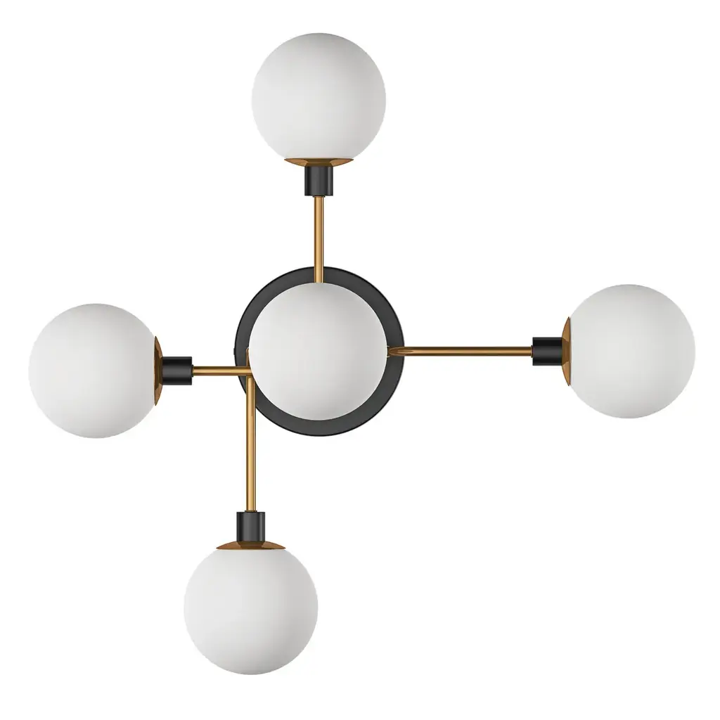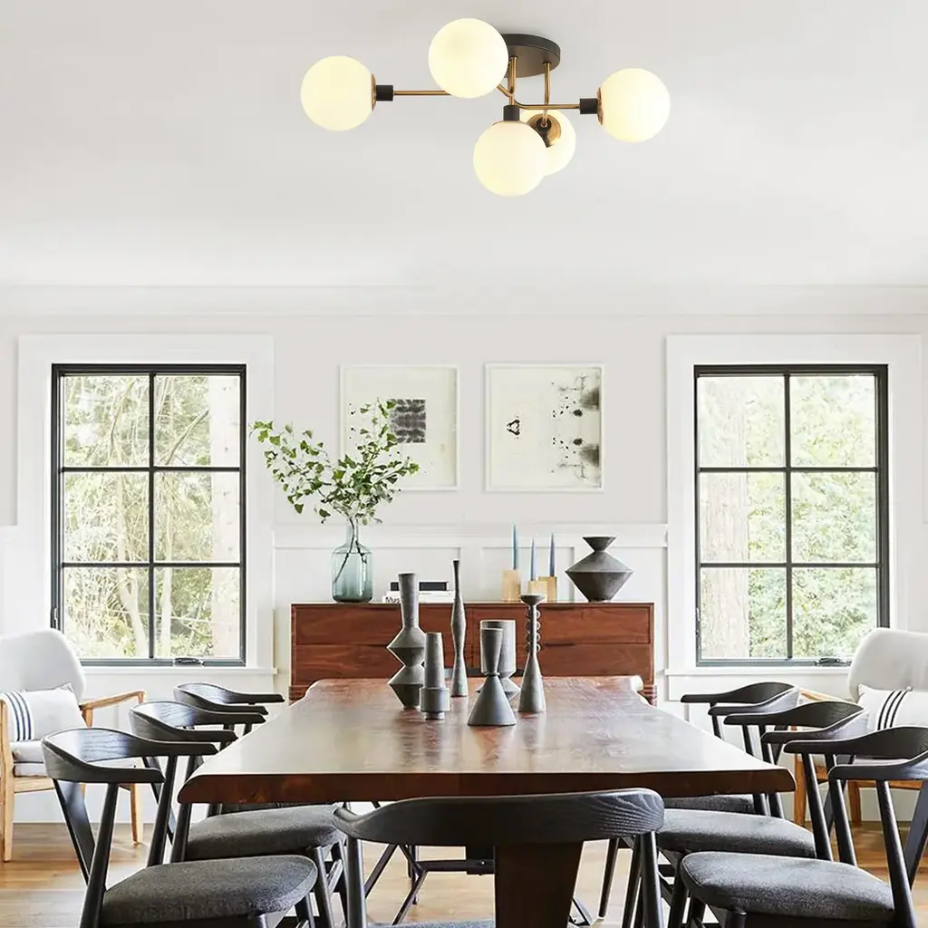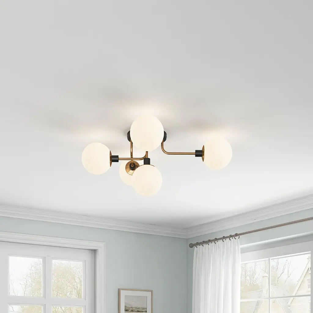 Matte Black 5-Light Semi Flush Mount Close To Ceiling Light With White Glass Shades - Black