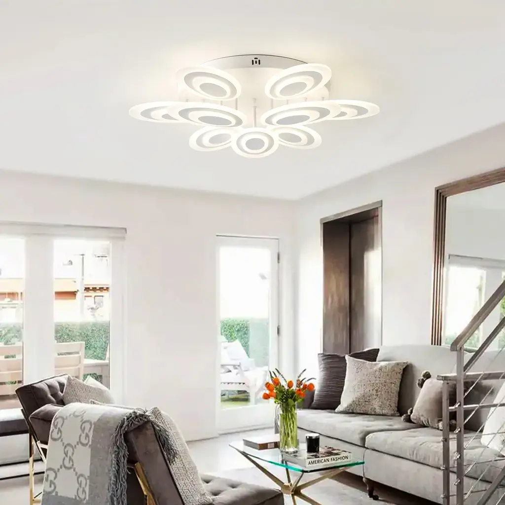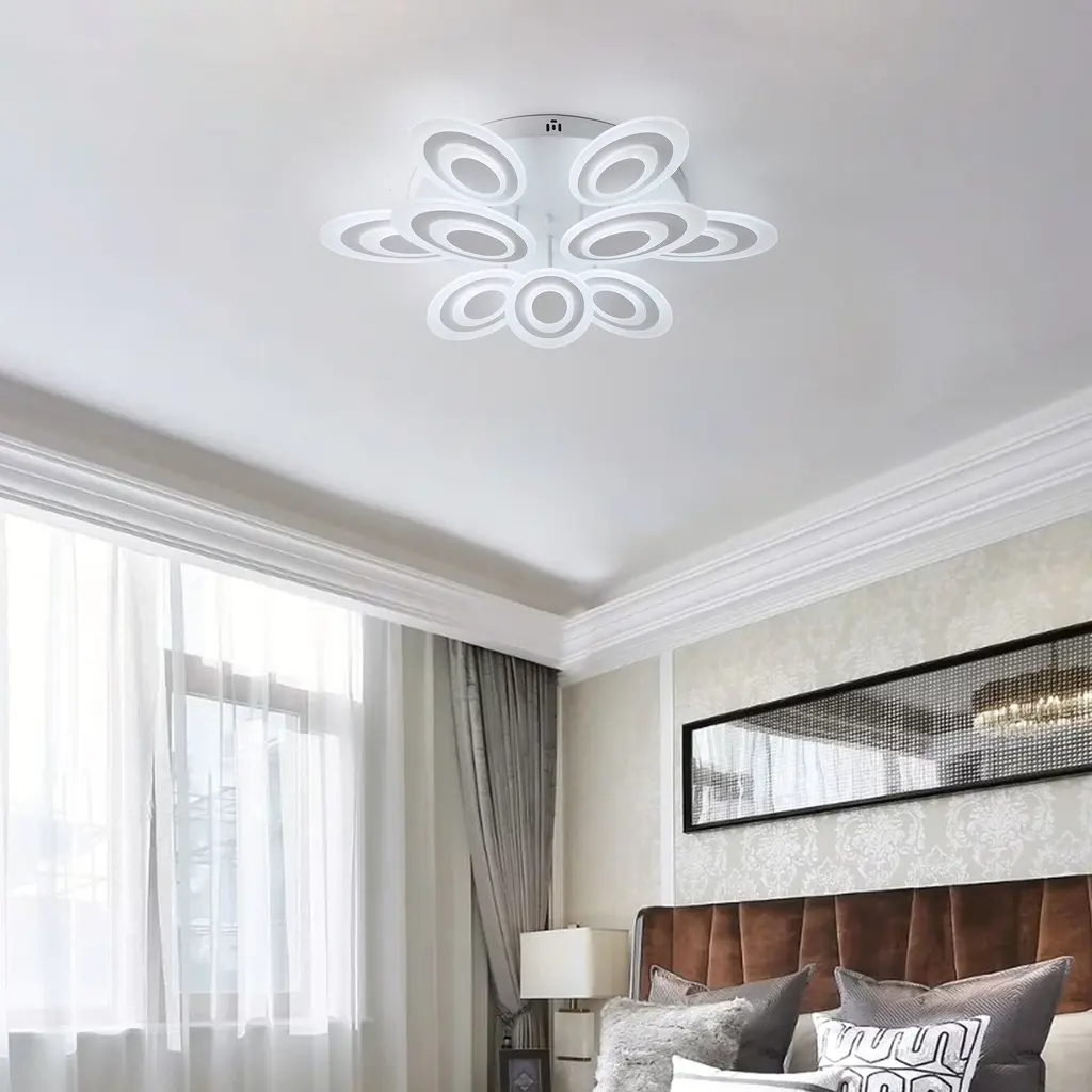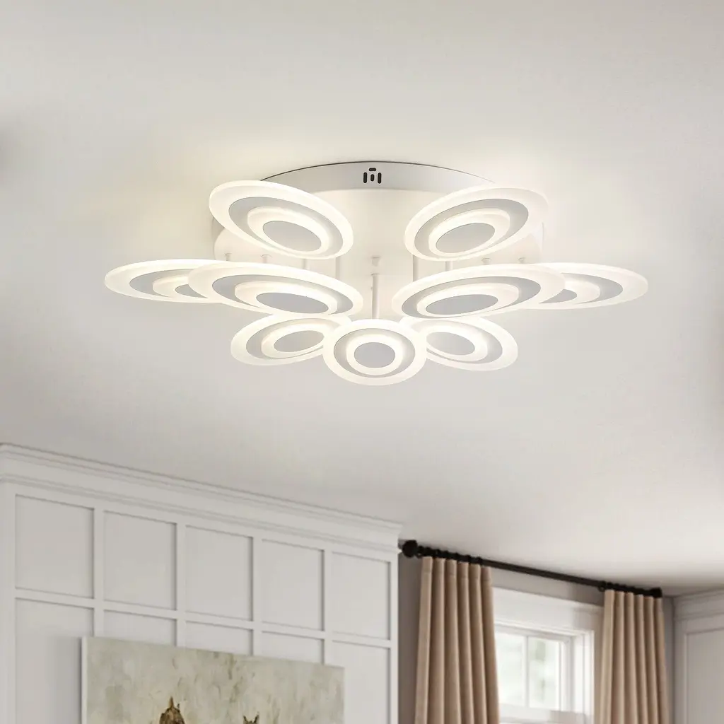 Specifications: Unique Design: The flush-mounted light has a design that resembles 7 petals, which gives off a stylish and sophisticated vibe in your household. The uncomplicated and sleek lines enhance its three-dimensional appearance. Ideal for use in various areas such as the bedroom, living room, kitchen, and apartment.Quality Assurance: High-quality metal and acrylic materials were used to craft the ceiling light. All products in the factory have to undergo rigorous safety monitoring, to ensure quality and safety, which is beautiful, corrosion-resistant, and durable for a long time.Easy to Assemble: There is no need to worry about the installation difficulty, to achieve installation quickly, all installation hardware and installation instructions are included in the package for you. If you have any problems please feel freely to contact us.Dimming with Remote: This lamp can adjust the light and dark and color temperatures (between 2800K to 6500K) altogether, a remote control will be come with to control it. Meantime, Ideal brightness of up to 3300 lumens which is bright enough for indoor use, it will perfectly meet your various needs.Perfect Decoration: This fresh and simplistic design is an elegant update for traditional and modern homes alike. Ideal for hallway, entryway, kitchen, bedroom, bathroom, dining room, living room, corridor, foyer, storage room, restaurant, cafe and bar.