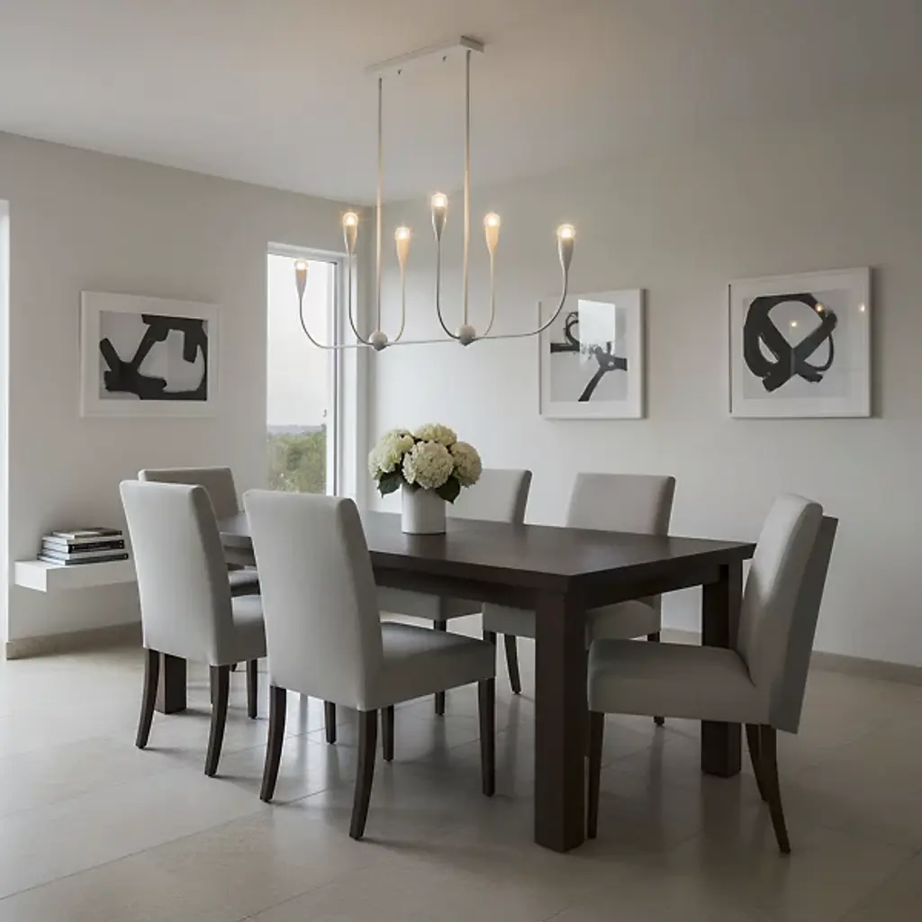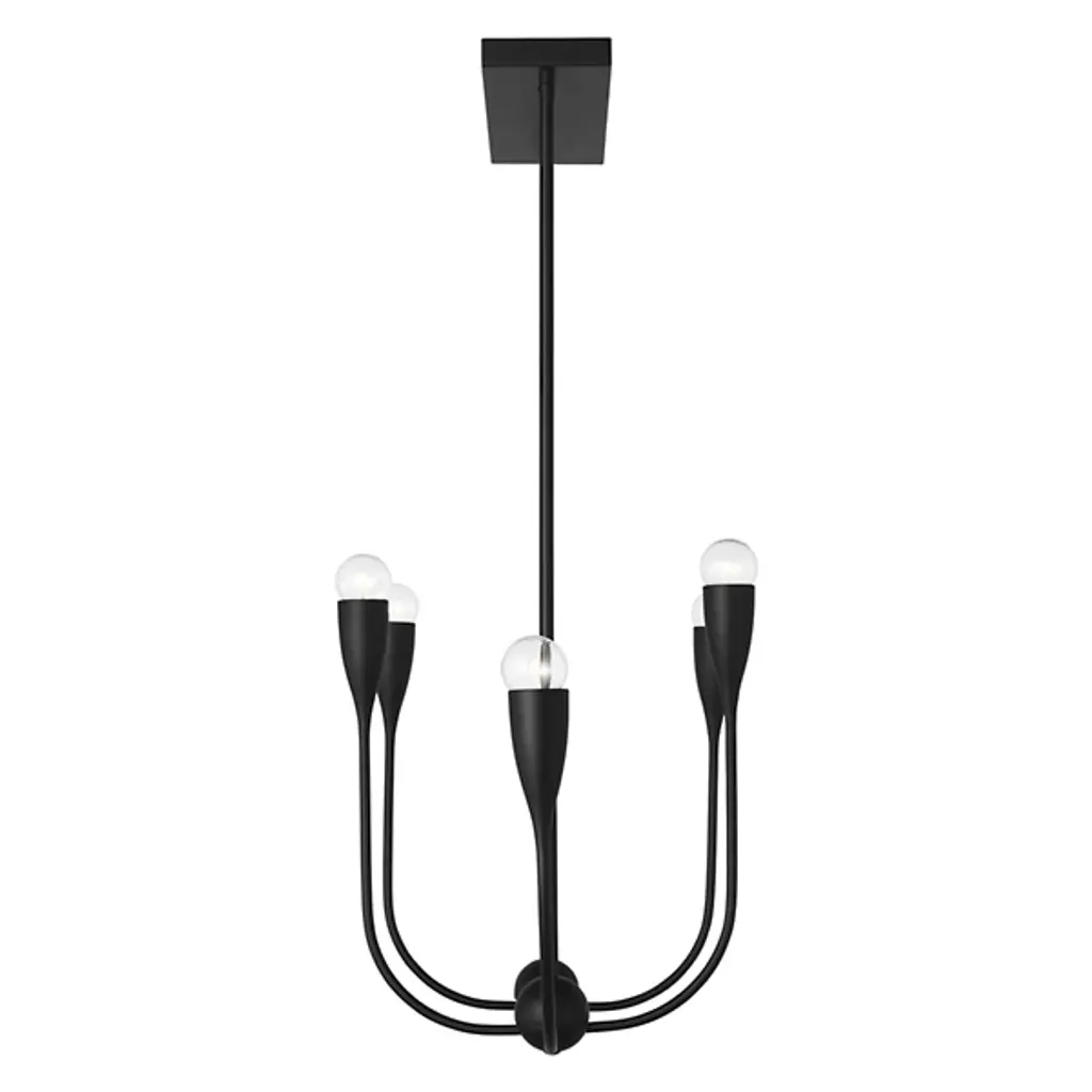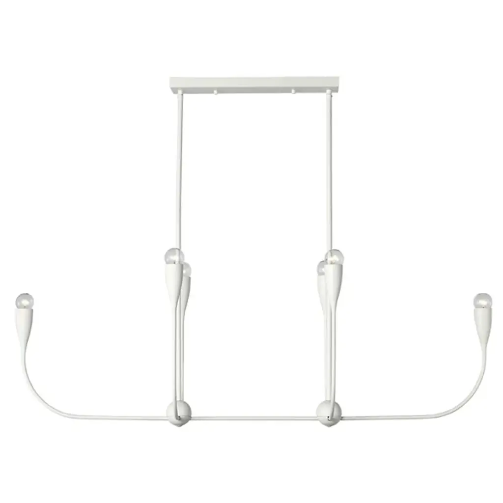 The Maya Linear Suspension from Generation Lighting features curved metal shades that cradle exposed bulbs in a linear arrangement. The flowing framework maintains the same sculptural character while creating broader illumination coverage suitable for dining areas or kitchen islands. This linear pendant brings substantial presence through its extended proportions and multiple light sources. The fixture accommodates clear bulbs that enhance the organic metal forms and offers brightness control through compatible dimming systems for varied atmospheric effects.