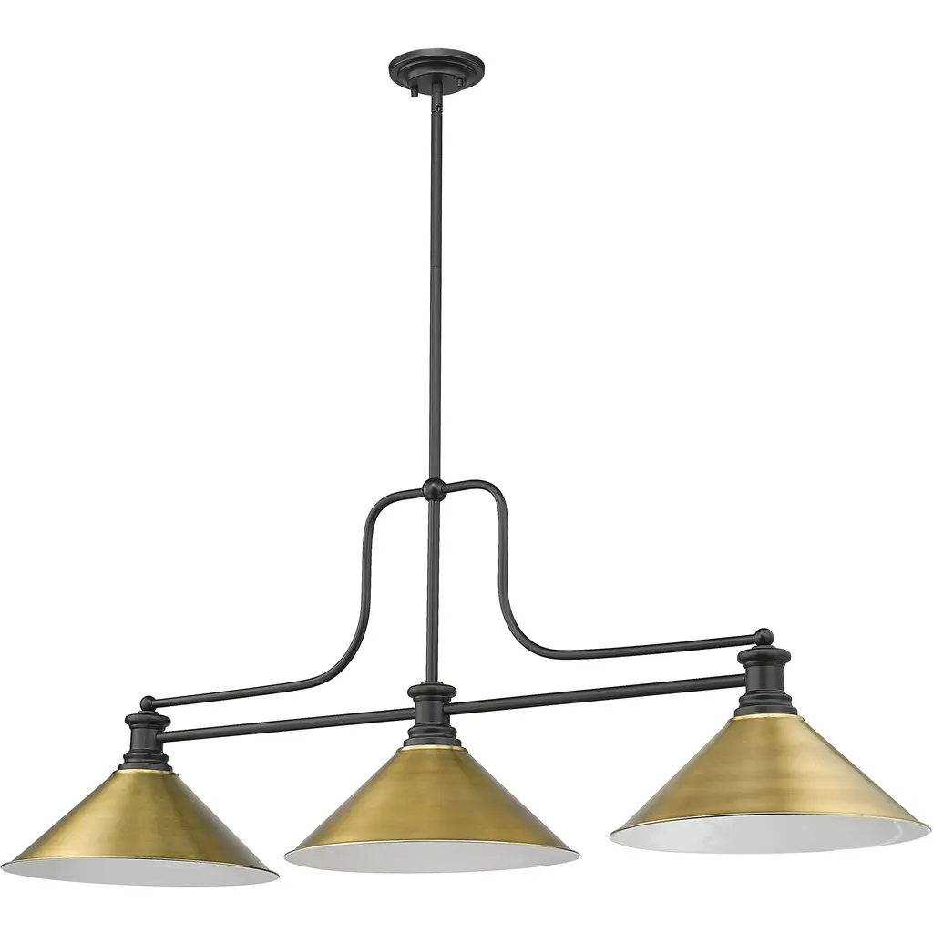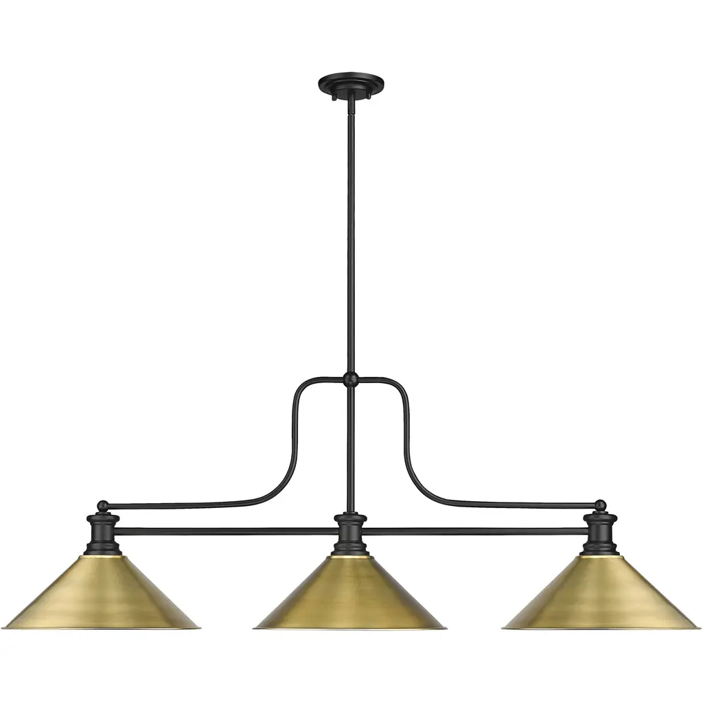 Melange 3 Light 52 Inch Matte Black Billiard Ceiling Light In Matte Black And Rubbed Brass