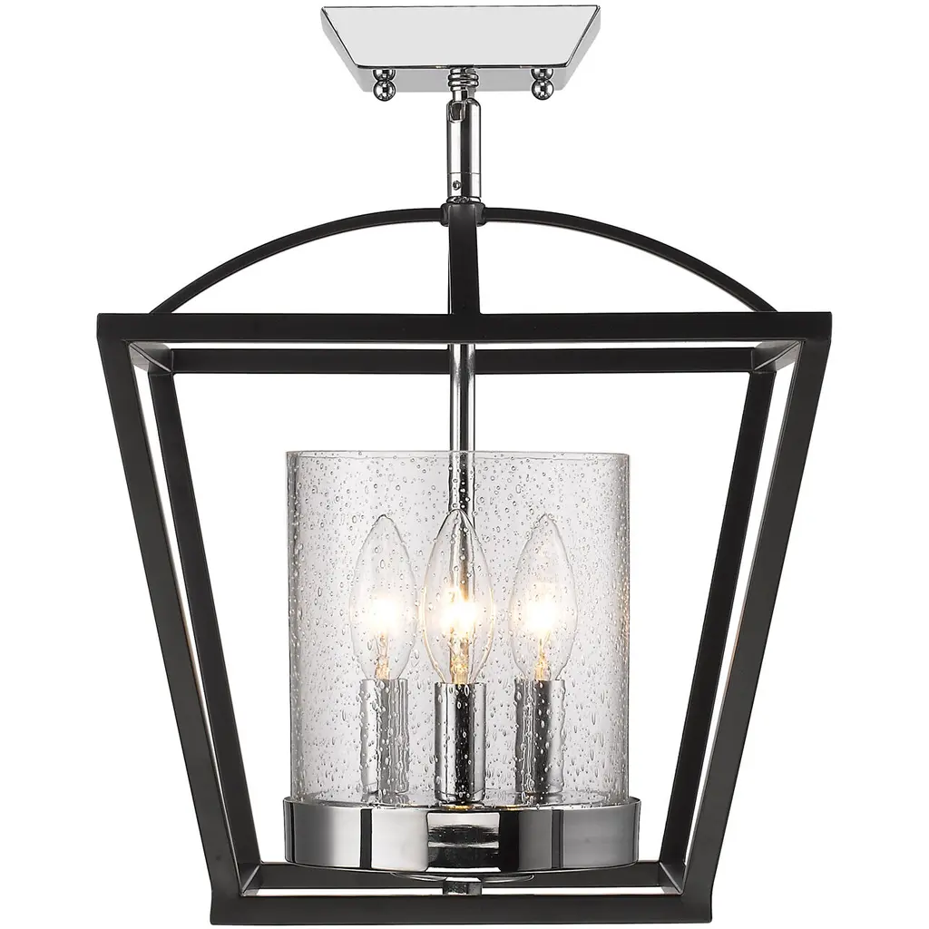 Mercer 3 Light 11.75 Inch Matte Black/chrome Semi-Flush Mount Ceiling Light, Convertible