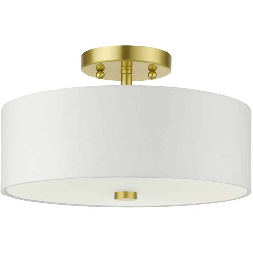 Meridian 2 Light 13 Inch Satin Brass Semi Flush Ceiling Light