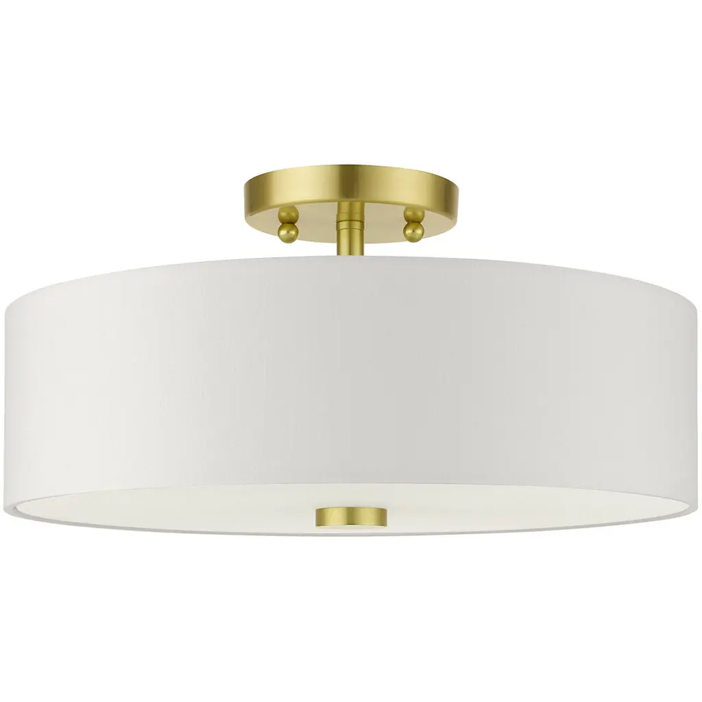 Meridian 3 Light 15 Inch Satin Brass Semi Flush Ceiling Light