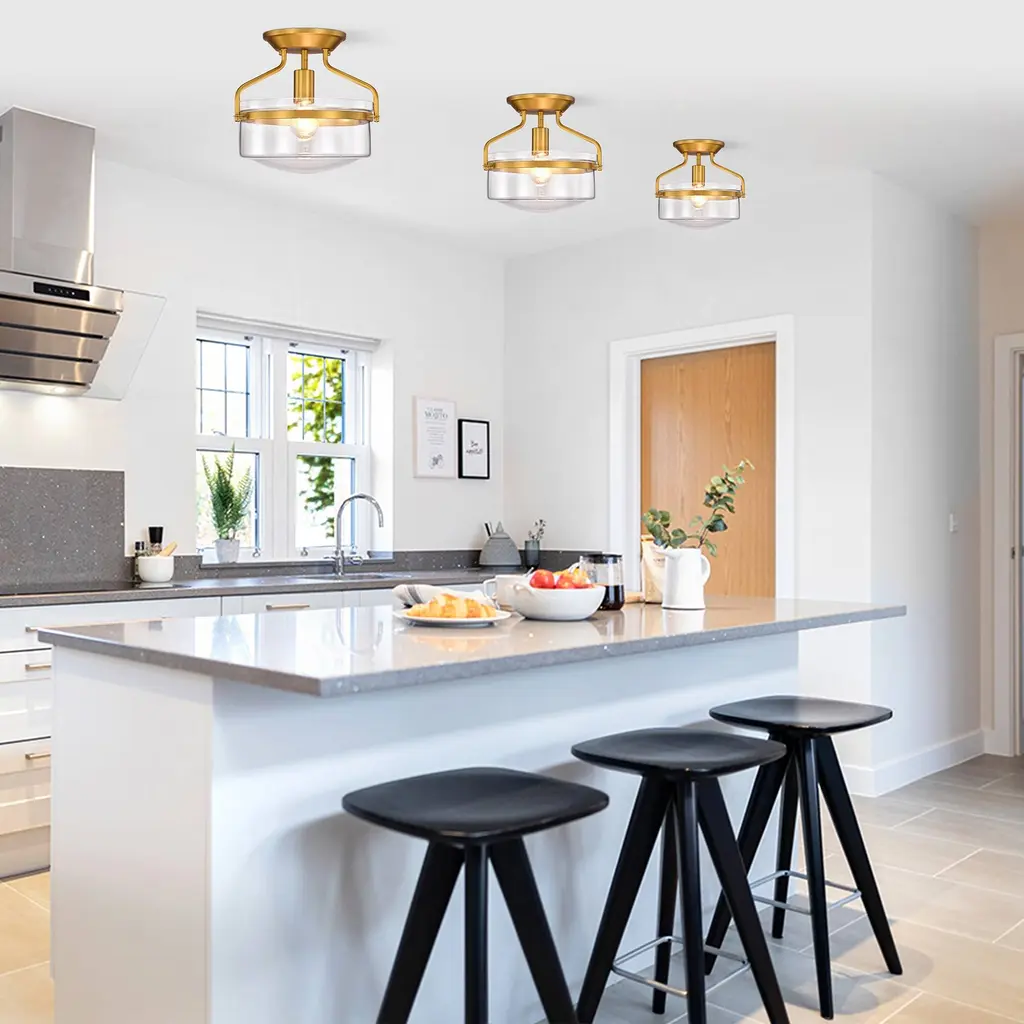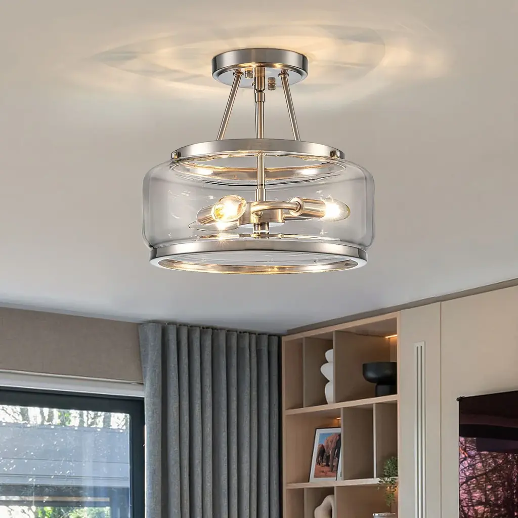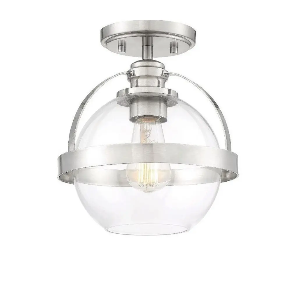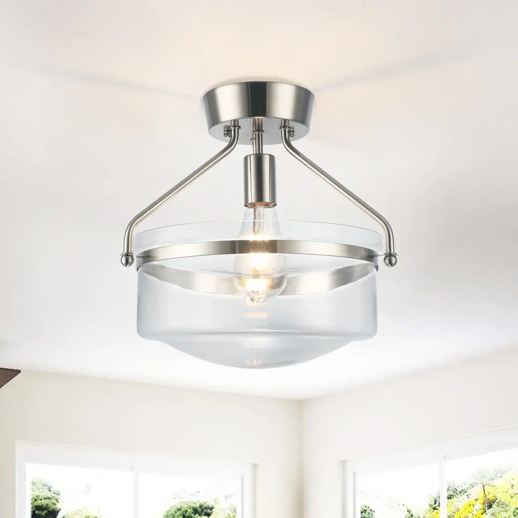 Illuminate your living space with this modern semi-flush ceiling lamp. Crafted with metal and glass, it features a sleek matte black finish that complements any decor. The glass bowl shade, banded in black, creates a contrast that adds to its contemporary flair. This lamp requires one 60-watt bulb (not included) to provide soft yet ample lighting.Features: