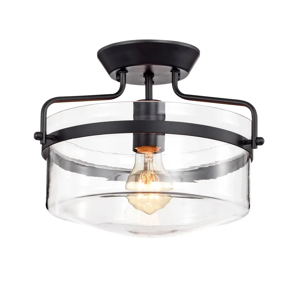 Merwin Matte Black Semi-Flush Ceiling Lamp 1-Light - Black