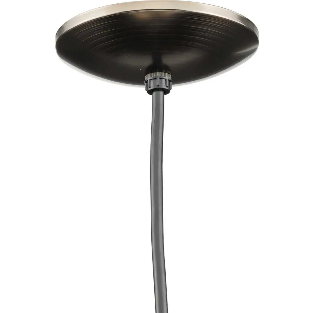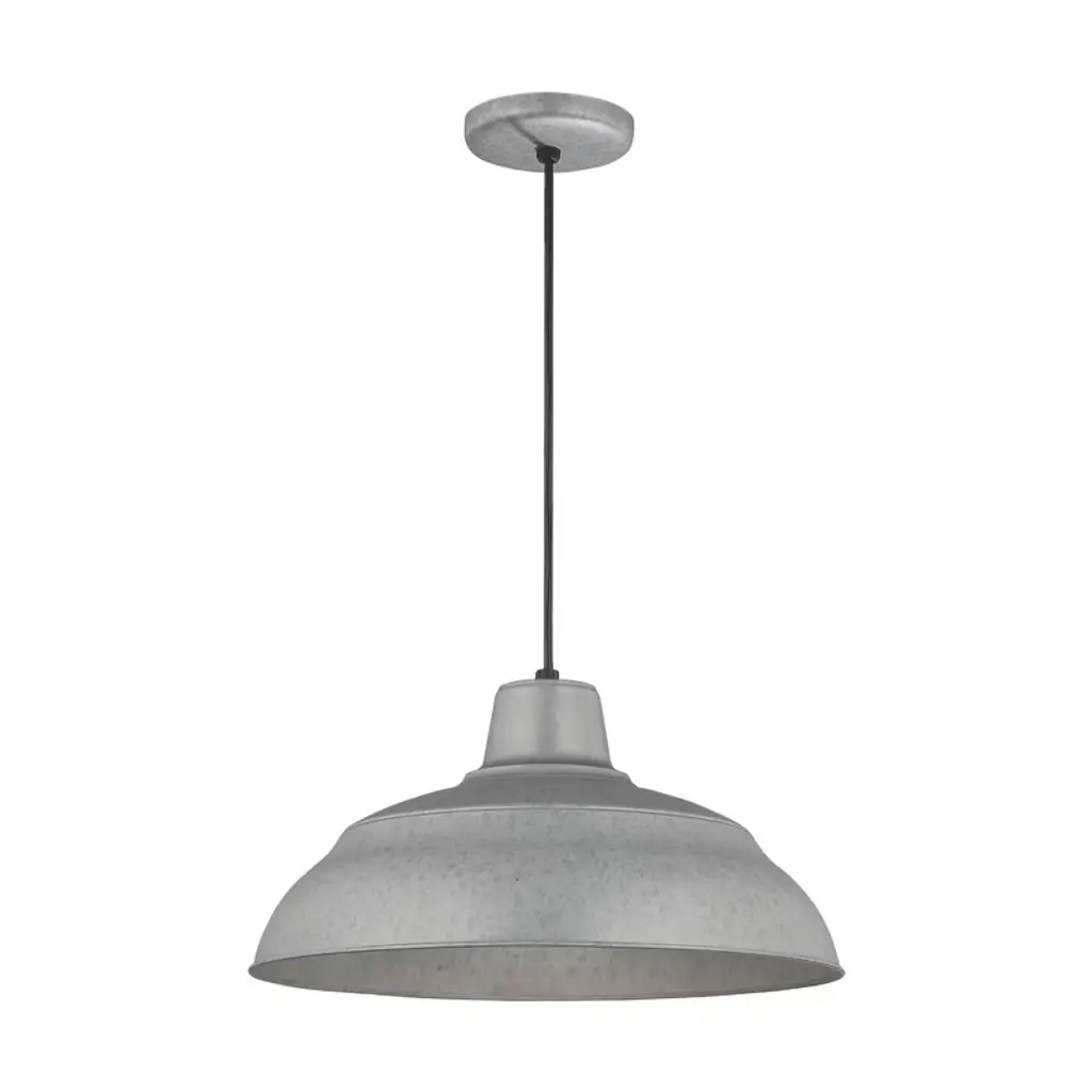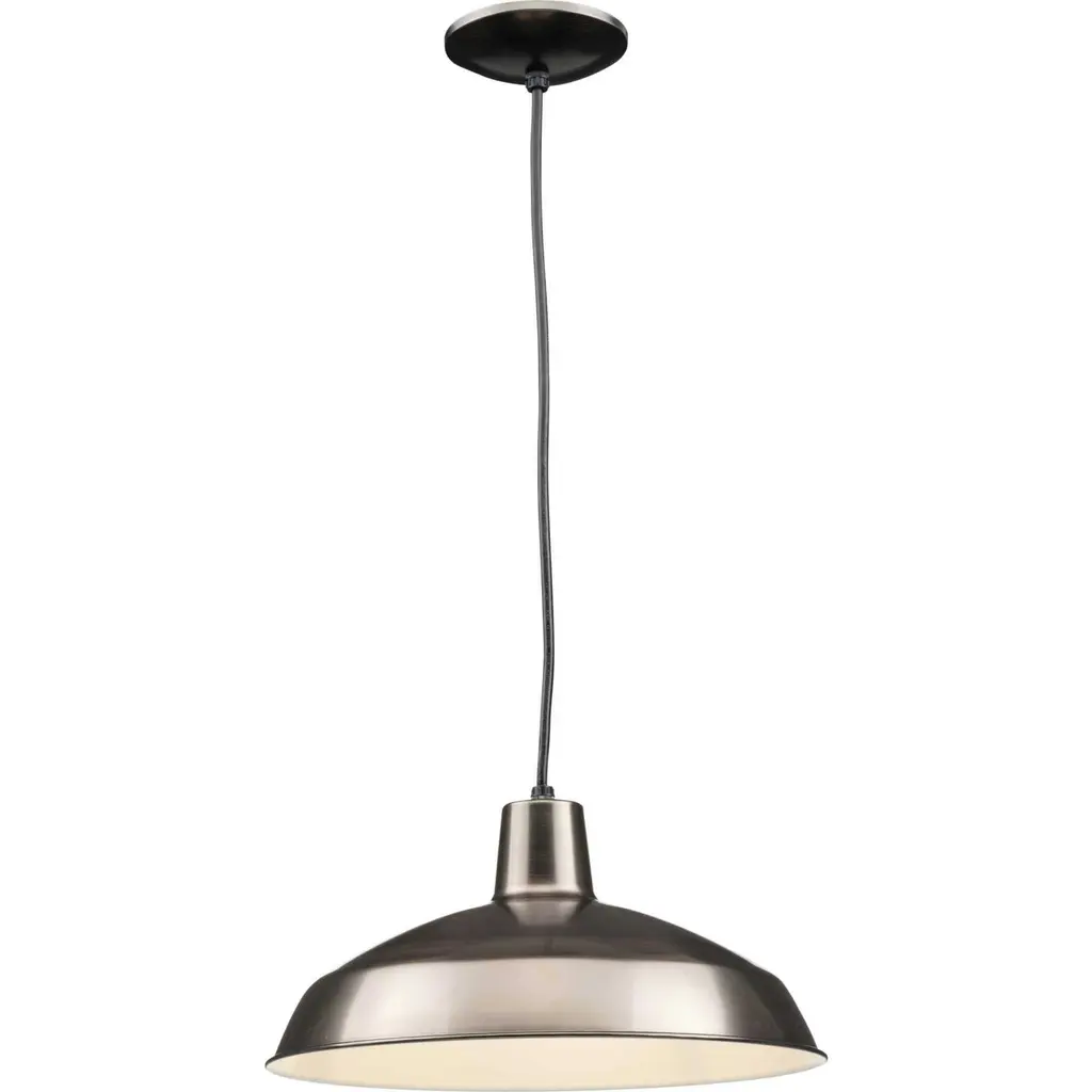 One-light industrial style warehouse cord-hung pendant with spun metal shade. Gloss white inside shade for reflectivity. 3 Conductor SVT black cord. Venetian Bronze finish.