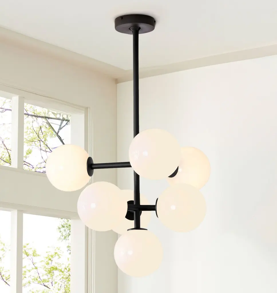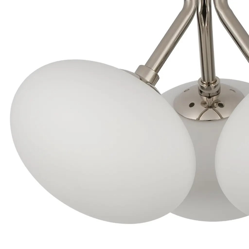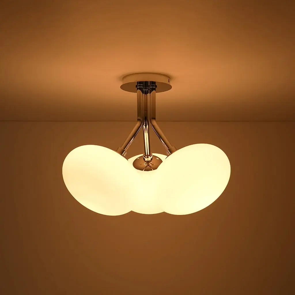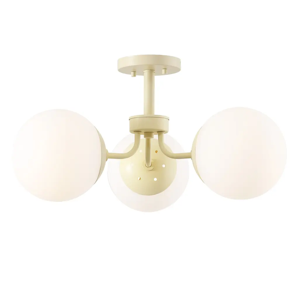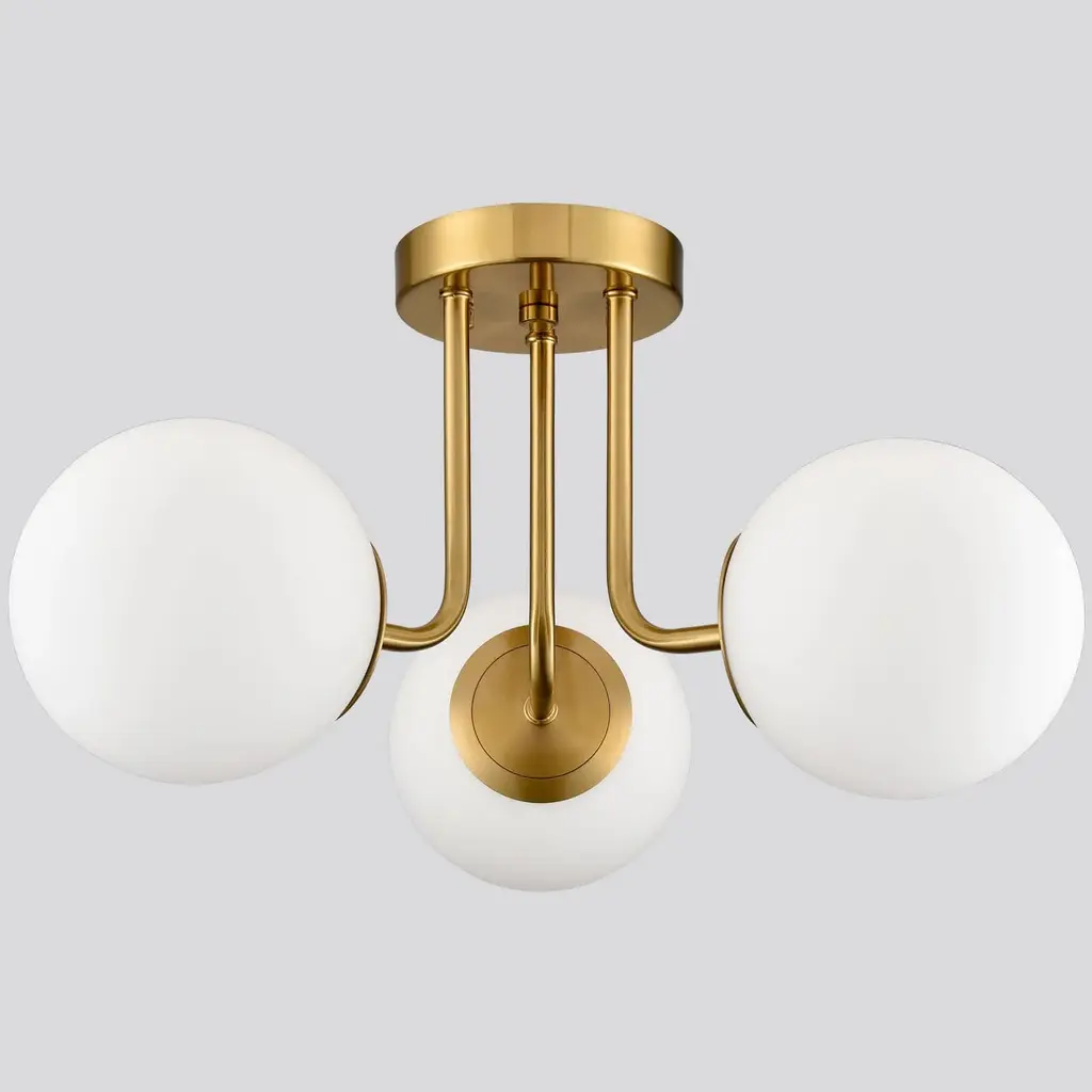 Embrace the world of mid-century modern with this opulent 3-light globe glass semi flush mount. With a finish of brass or nickel, three gracefully arched arms intertwine three exquisite opal glass globes, creating an enchanting and sophisticated bubble silhouette that exudes a warm and stylish ambience. This graceful glass globe bubble ceiling light is a charming addition to any foyer, dining area, living room, kitchen, or bedroom.Features:Specifications: