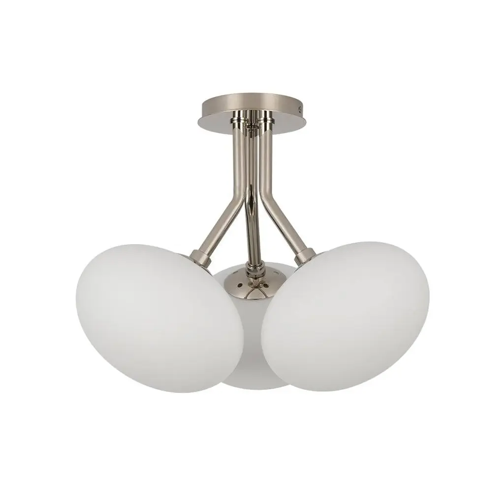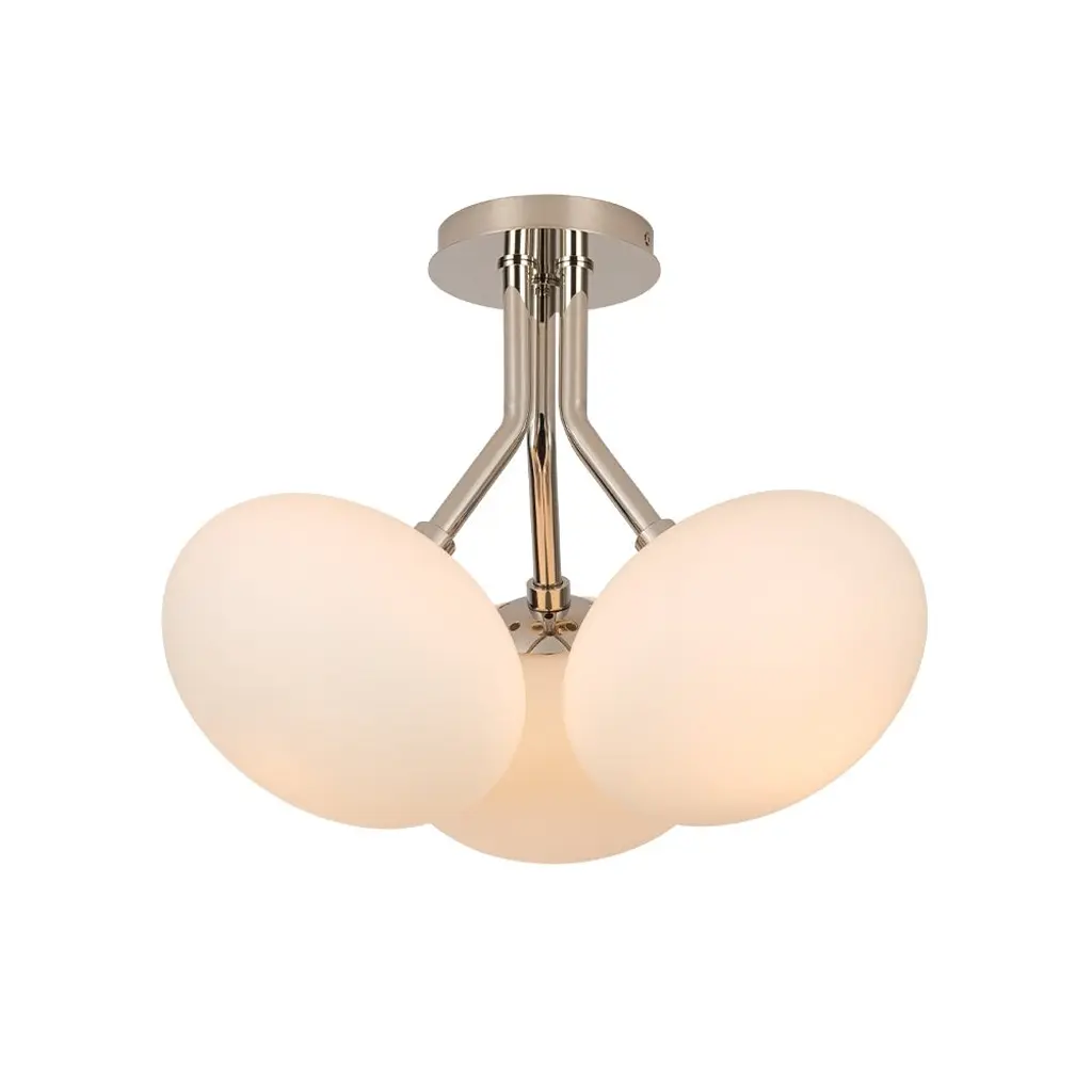 Mid-Century 3-Light Opal Glass Globe Semi Flush Ceiling Light - Nickel