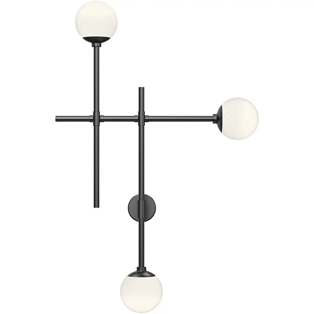 Wall or ceiling lamp from the MIKADO collection with matt powder-coated powder-coated metal frame. Milk-white blown glass diffuser diameter 14 cm. The rotation of the secondary arm allows to choose the preferred position.Light source: G9, Wattage: 2x10W LEDCompositional flexibility. MIKADO embodies the very essence of expressive and creative freedom: the ability to orient the rods at will allows the creation of orthogonal or dynamic geometries, exploring more rigid or more fluid solutions. The balance between the painted metal structure and the diffusers is completely disengaged from any formal constraints. This extreme autonomy is the reason why MIKADO was awarded the Good Design Award.