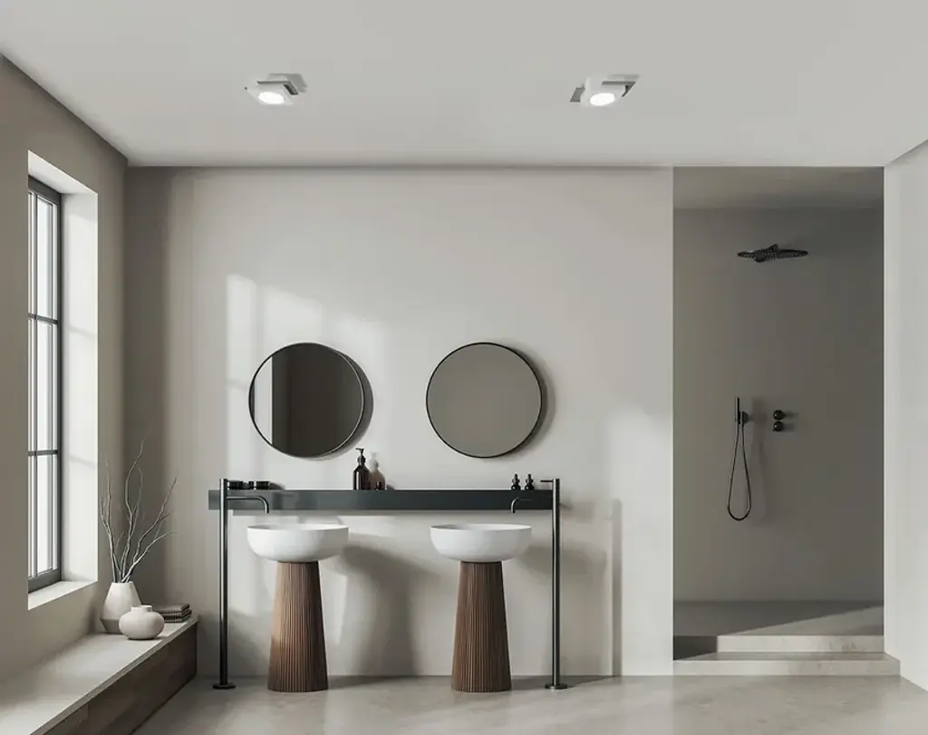 Milet is a plaster ceiling lamp with a Quartz Gray (RAL 7039) painted metal element. Equipped with GX53 lamp holder.