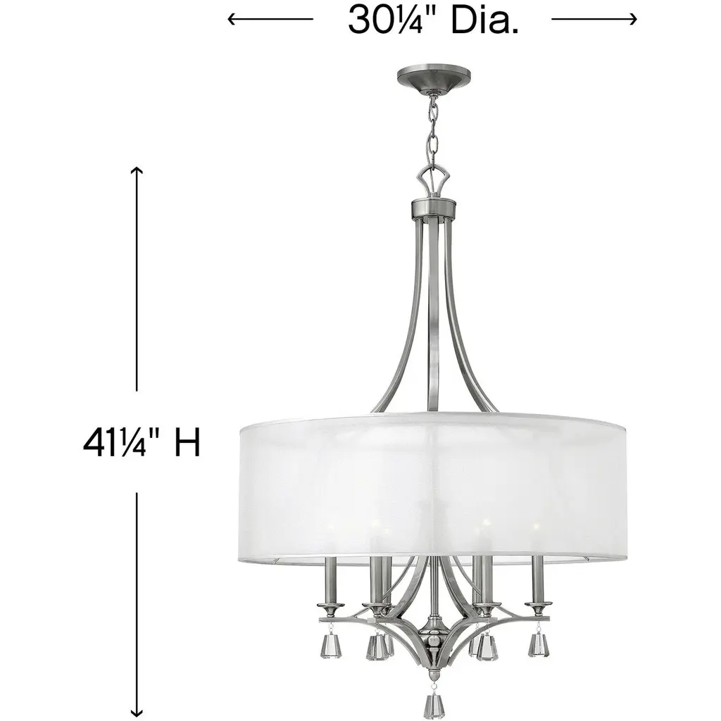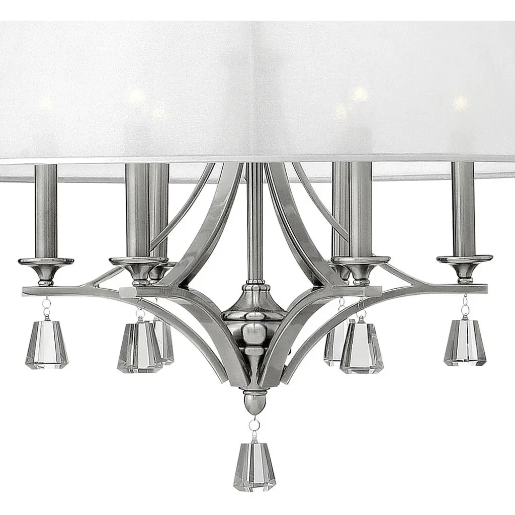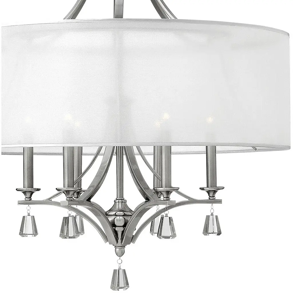 This elegant collection in a Brushed Nickel and French Bronze finish features a sheer translucent double hardback shade and tapered square crystal accents.