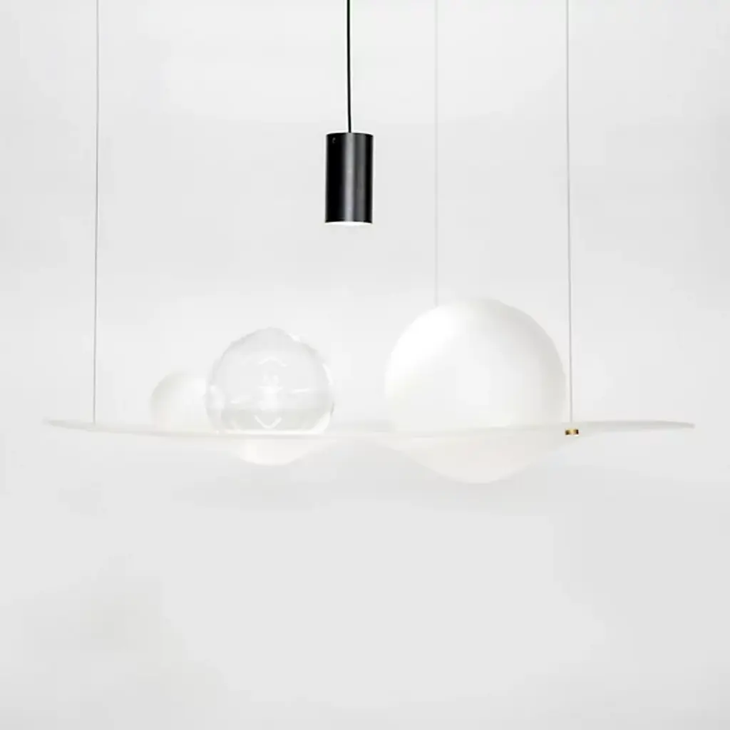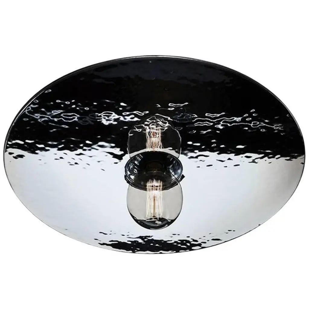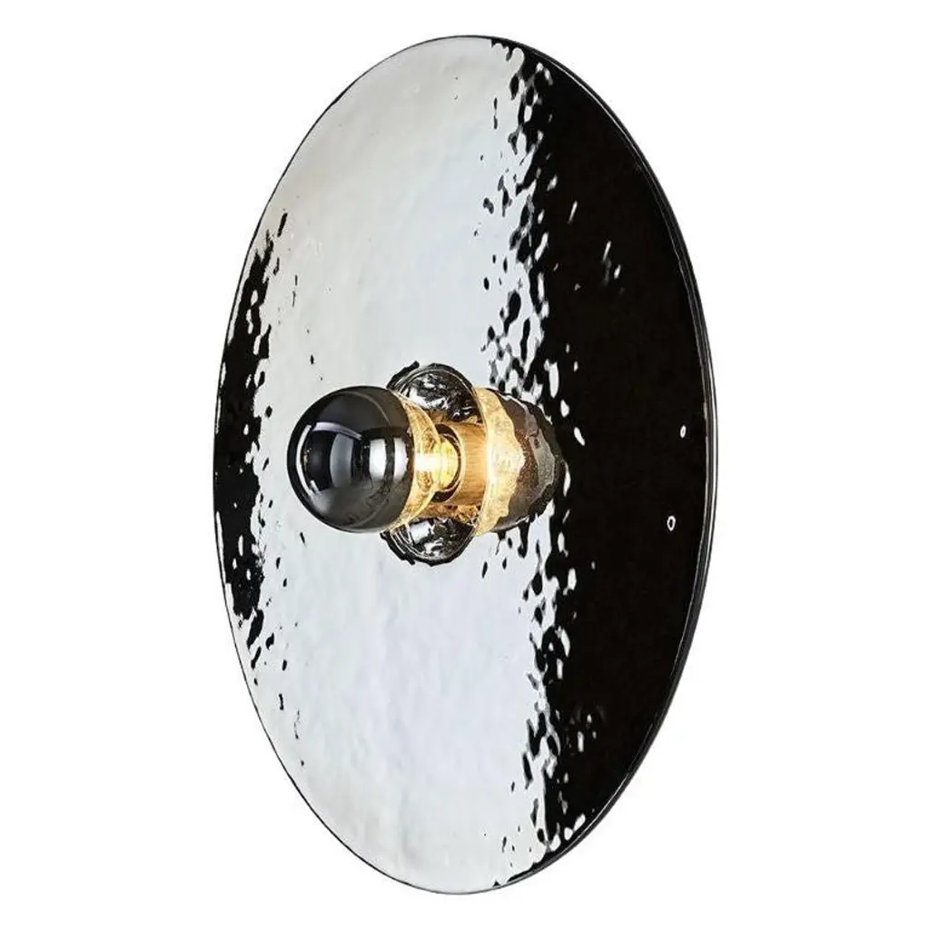 Silver thermoformed glass (also available in gold) mounted on a base available in lacquered black metal or solid oak. Can be used as a wall or ceiling light.Handmade in Europe Available in two sizes :Large 27.6 in. diameter x 5.9 in. deepMedium 15.75 in. diameter x 5.9 in. deep