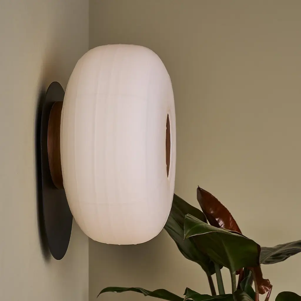 The Misko Wall/Ceiling Lamp from B.lux evokes the serene beauty of traditional Japanese lanterns with a design that functions elegantly as both a wall-mounted sculpture and a ceiling fixture. Crafted by Stone Designs, it features a bold oval metal backplate that highlights the generous curves of the blown glass shade, which mimics the texture of washi paper with a delicate linear ribbed pattern. This sophisticated piece blends simplicity and naturalness, casting a radiant, calming glow to enhance any refined interior. Highlights