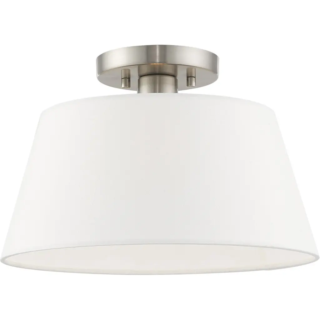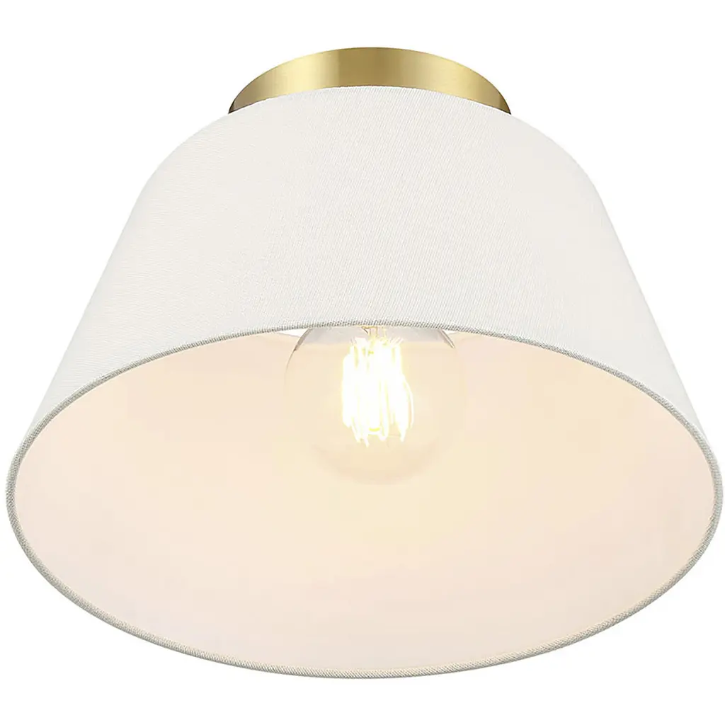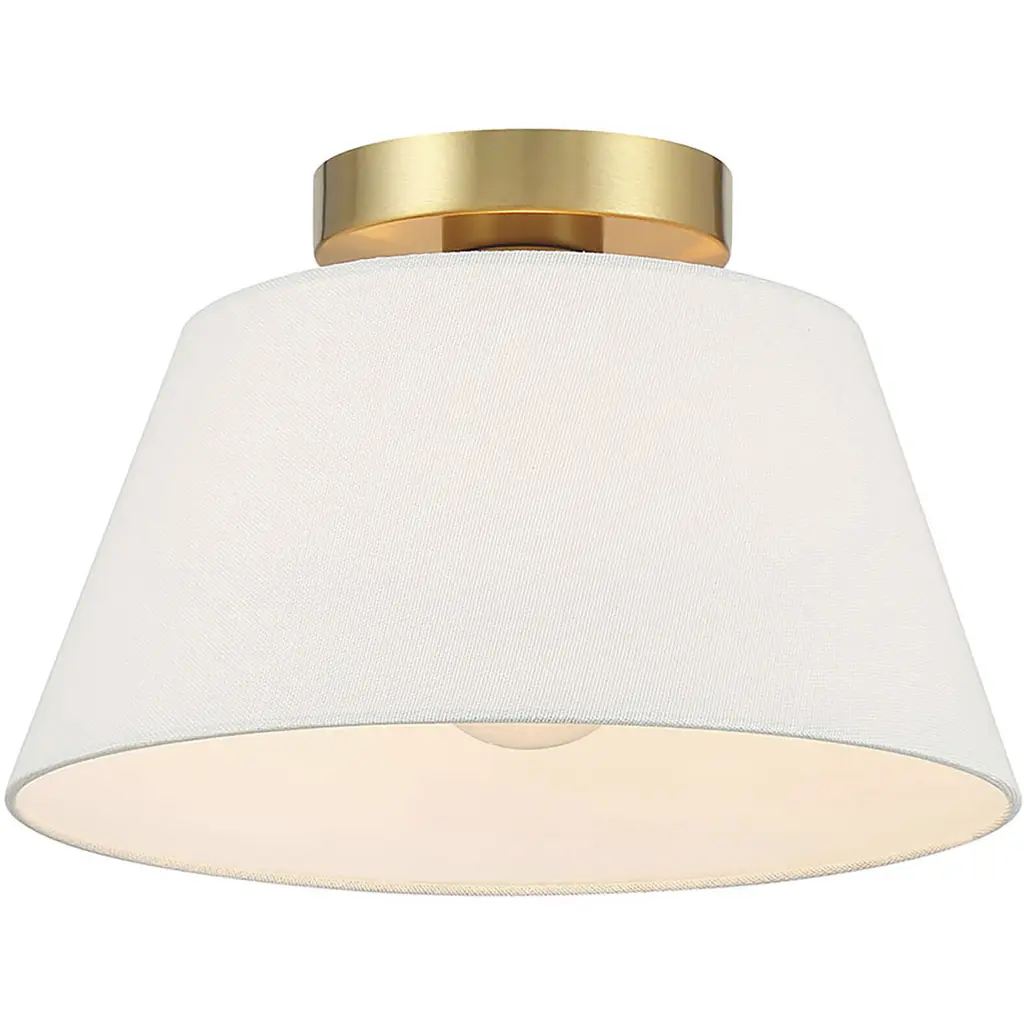 Use this 3-light ceiling semi-flush mount to freshen up any room. The elegant white linen shade provides a crisp and classic look that works beautifully with any decor and style. The Natural Brass finish is wonderfully versatile. 7.5" height, 12" width. Uses 1 standard size bulb of up to 60 watts. Bulb not included.