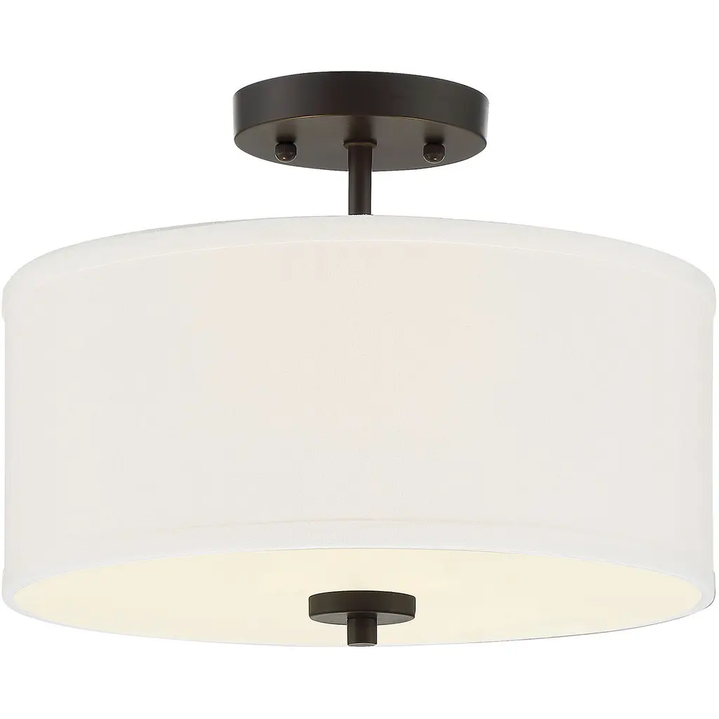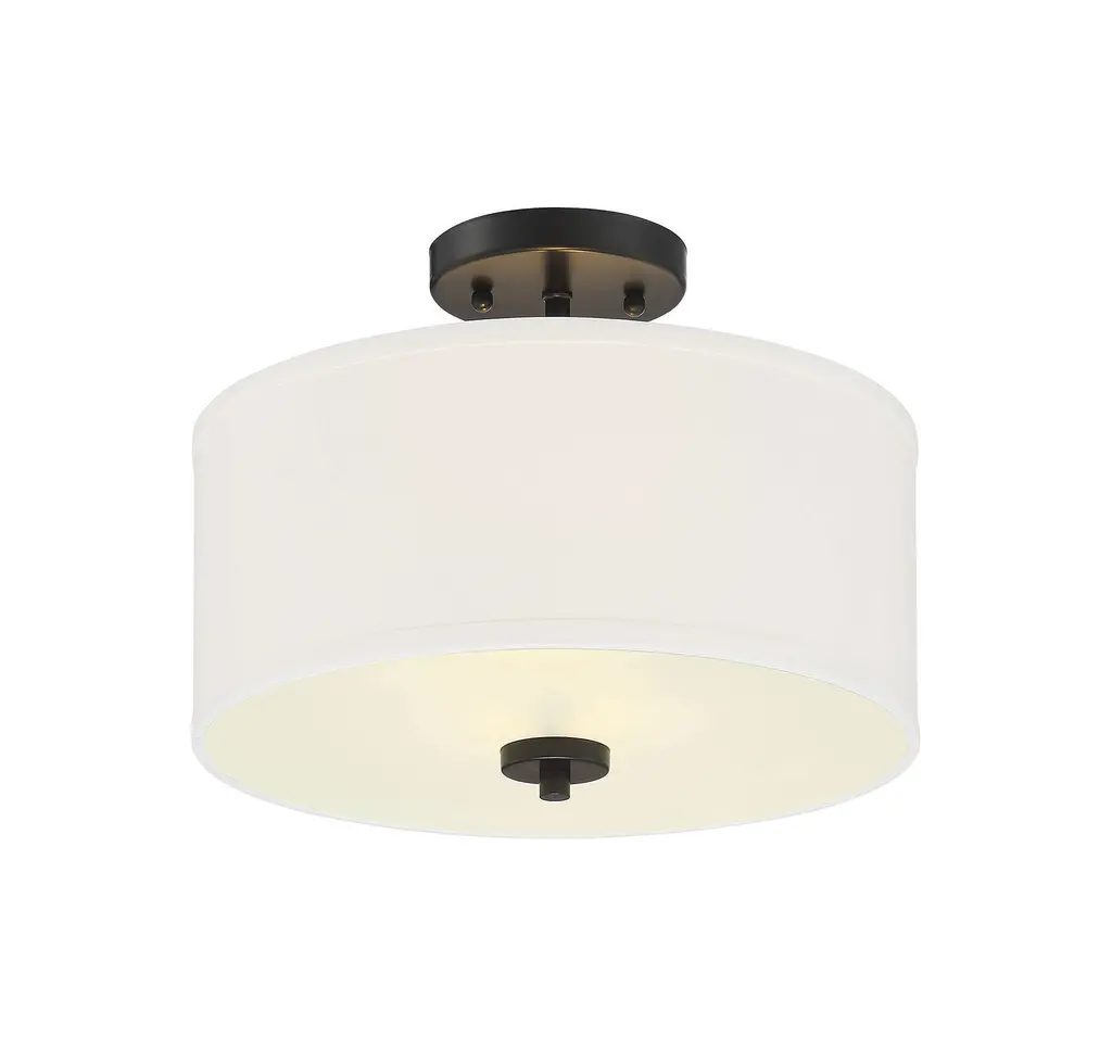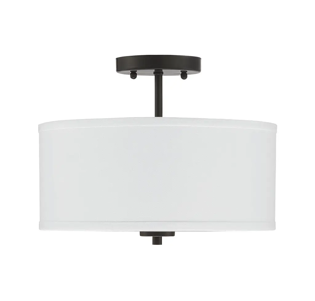 This versatile 2-light ceiling semi-flush mount has a crisp white fabric shade and Matte Black finish. Perfect for brightening up any room It is 10" in height and 13" in width. This light uses 2 standard size bulbs with a maximum of 60 watts per bulb, is LED compatible and is dimmable.