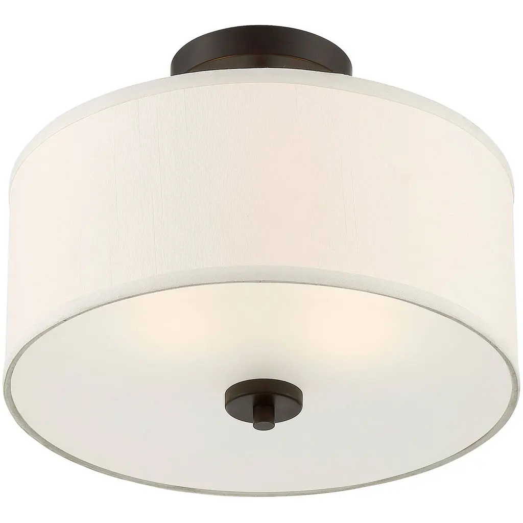 This versatile 2-light ceiling semi-flush mount has a crisp white fabric shade and Oil Rubbed Bronze finish. Perfect for brightening up any room 10" in height and 13" in width.
